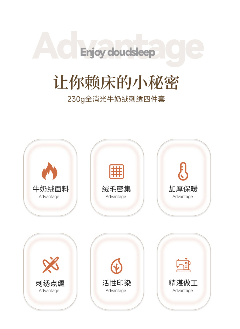 鸿织源家纺 2025新款230g全消光牛奶绒刺绣四件套 豆沙,豆沙