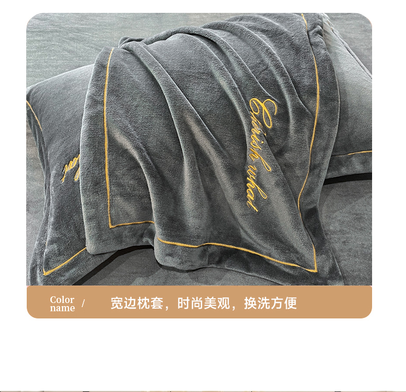 商品名称:鸿织源家纺 2025新款230g全消光牛奶绒刺绣四件套 罗兰灰