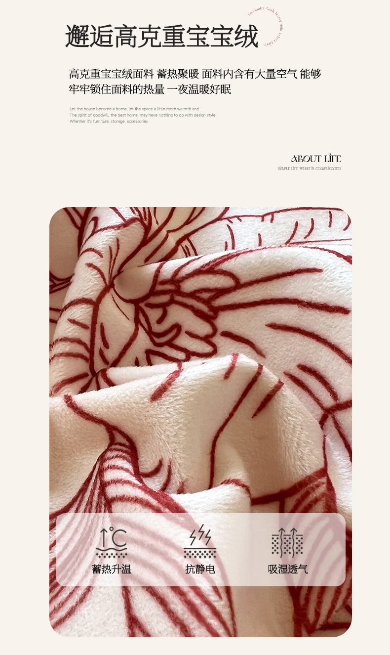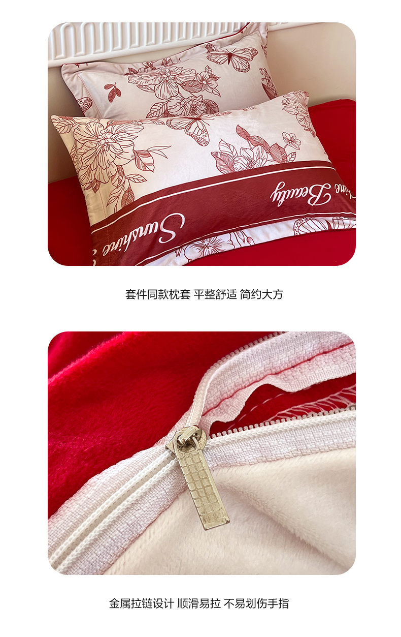 商品名称:慕希家纺 2024新款A类婚庆款宝宝绒数码印花四件套 浪漫一生