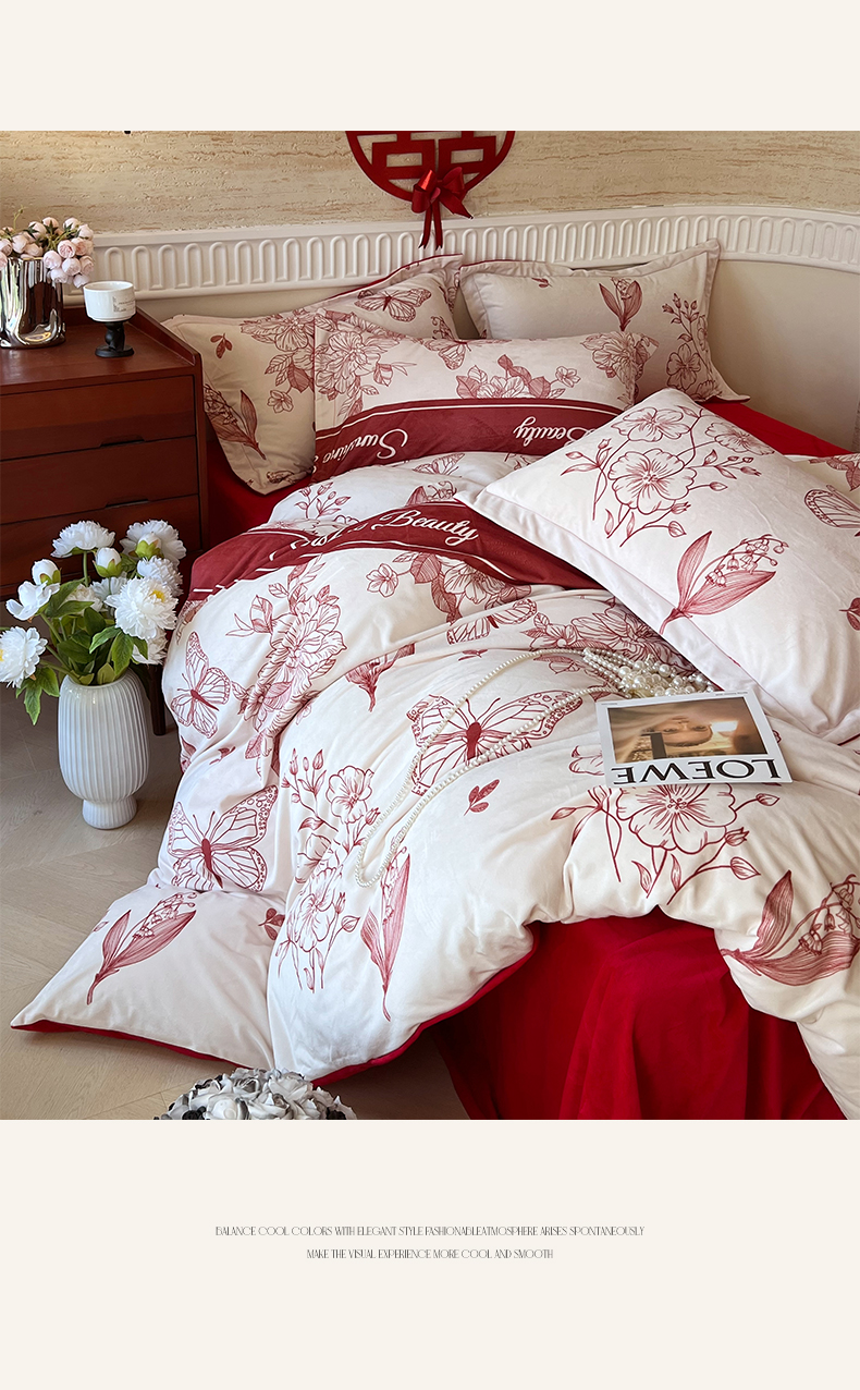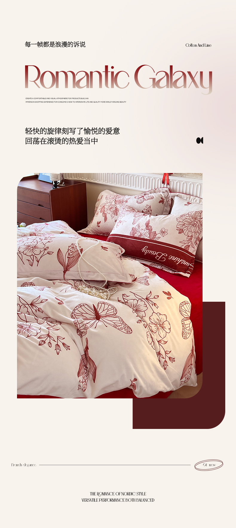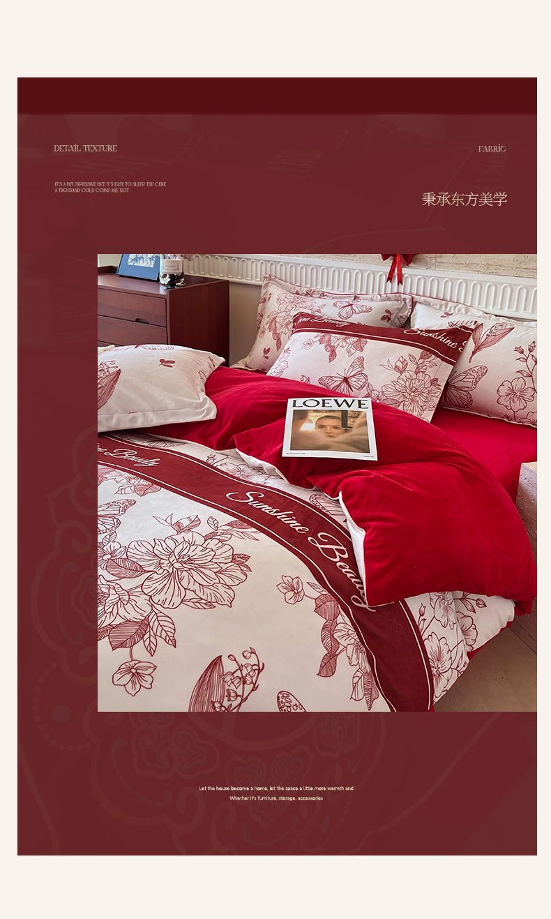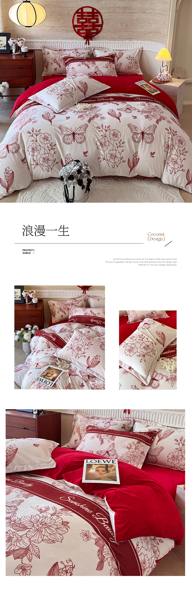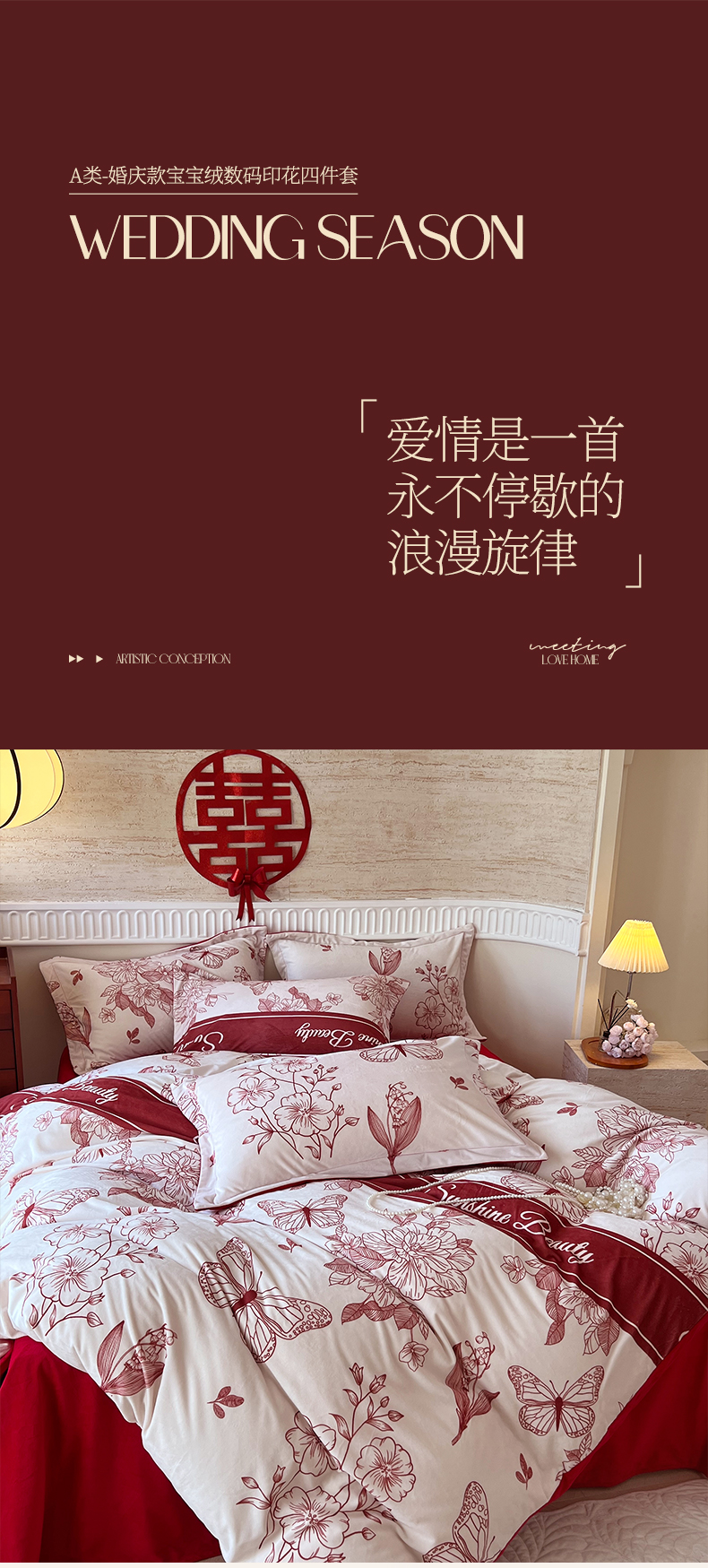 慕希家纺 2024新款A类婚庆款宝宝绒数码印花四件套 浪漫一生