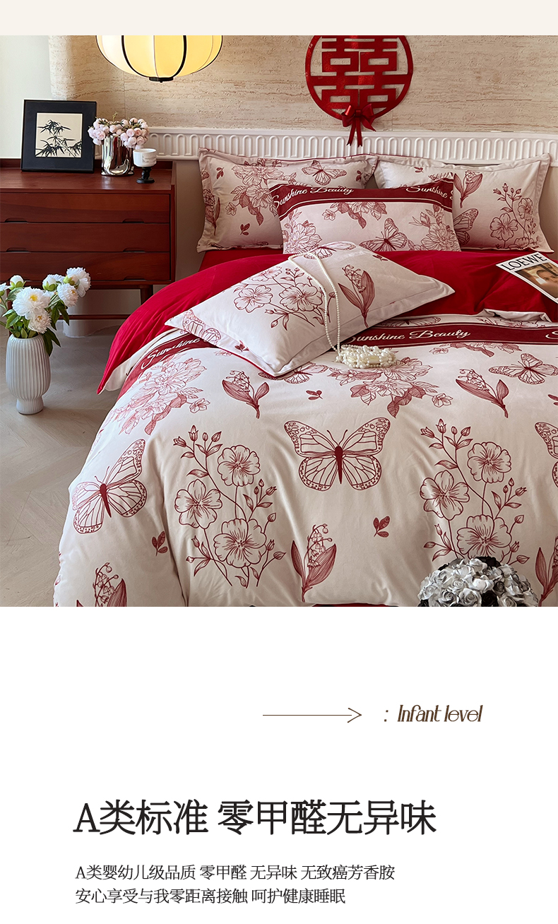 (总)慕希家纺 2025新款婴儿绒婚庆刺绣四件套,吾家有喜,永结同心