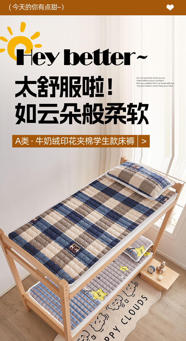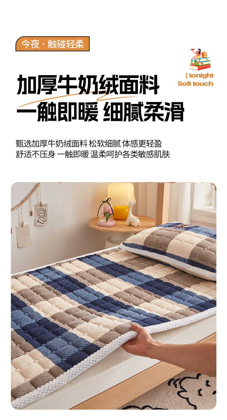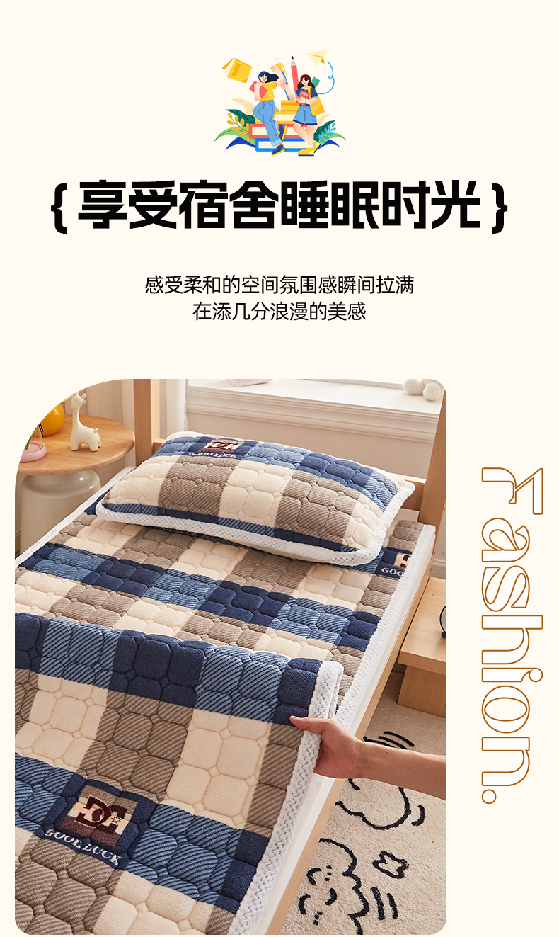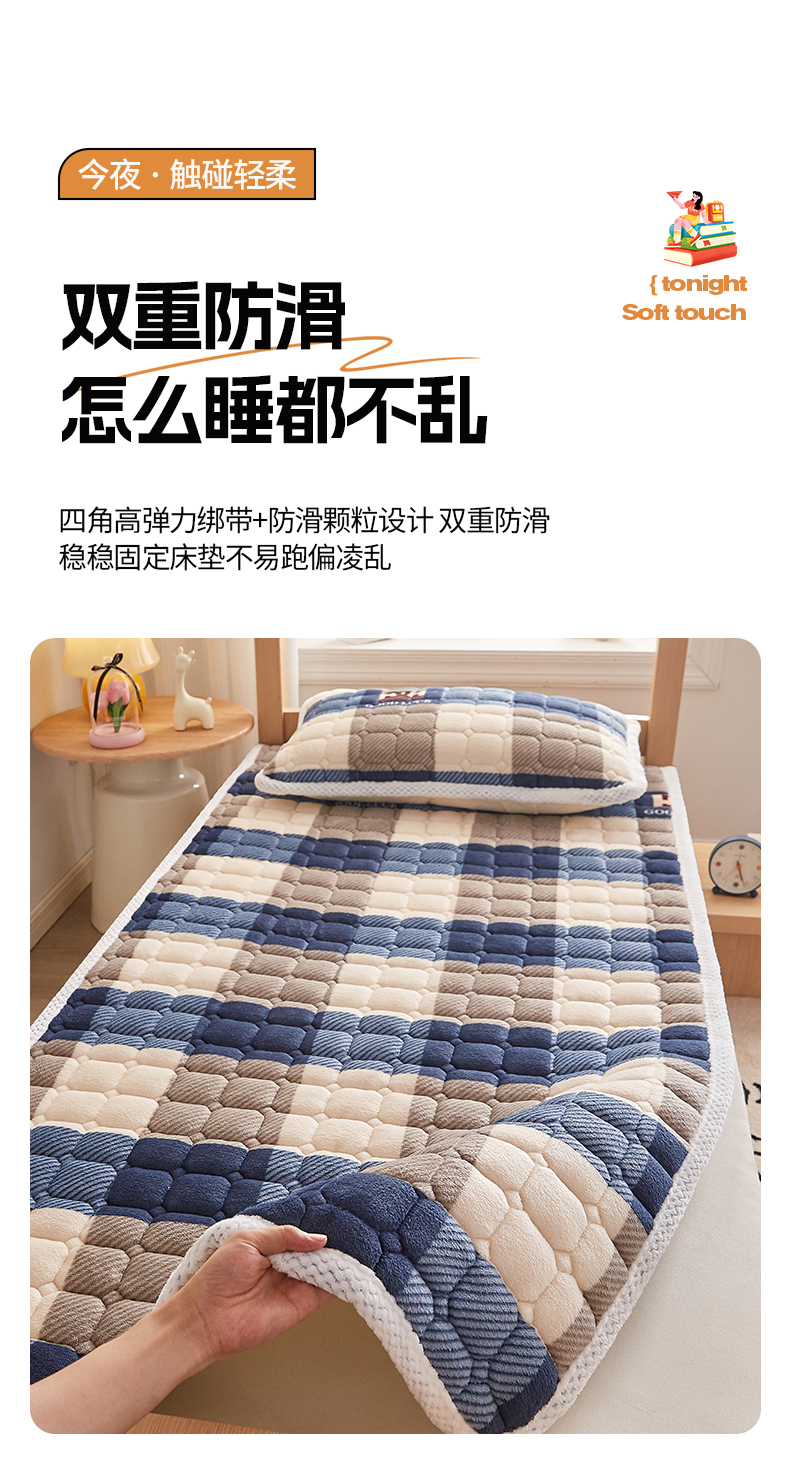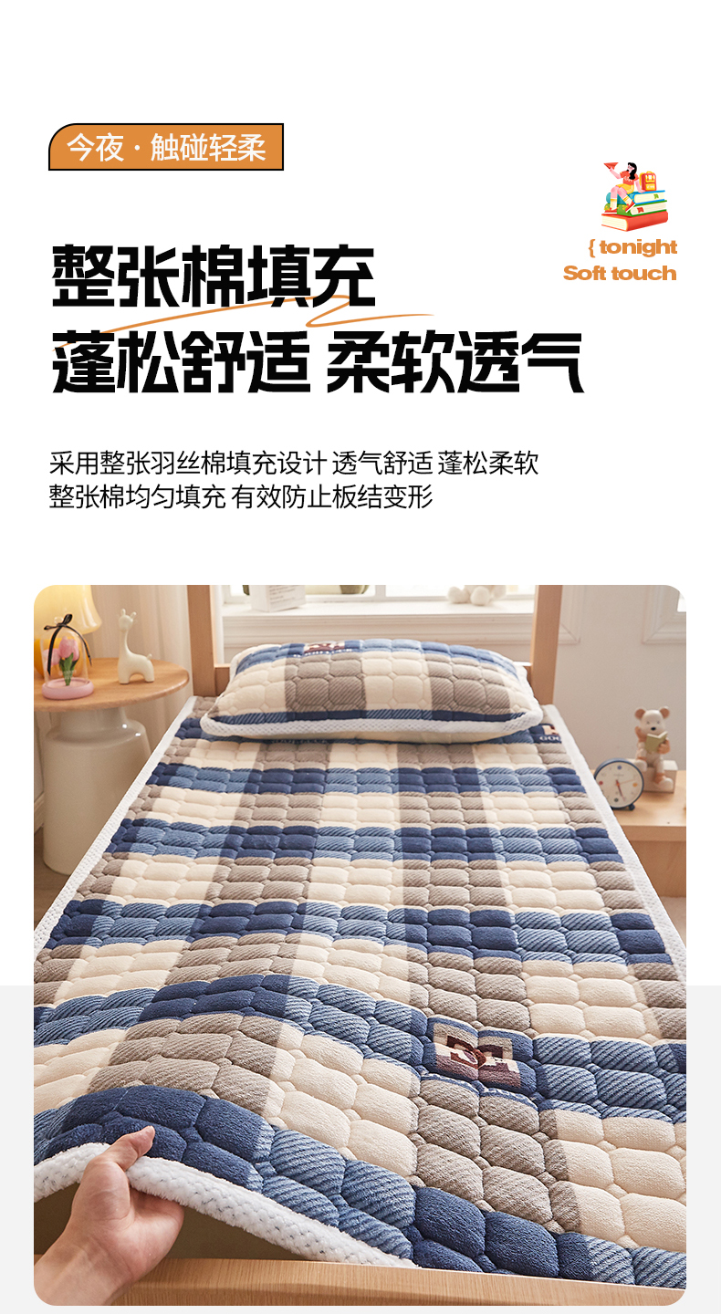 当前位置: 91家纺网 > 商品网购 > 床垫/床褥 > 普通床垫 > 东宇床垫 2025新款牛奶绒床褥学生床 格子蓝