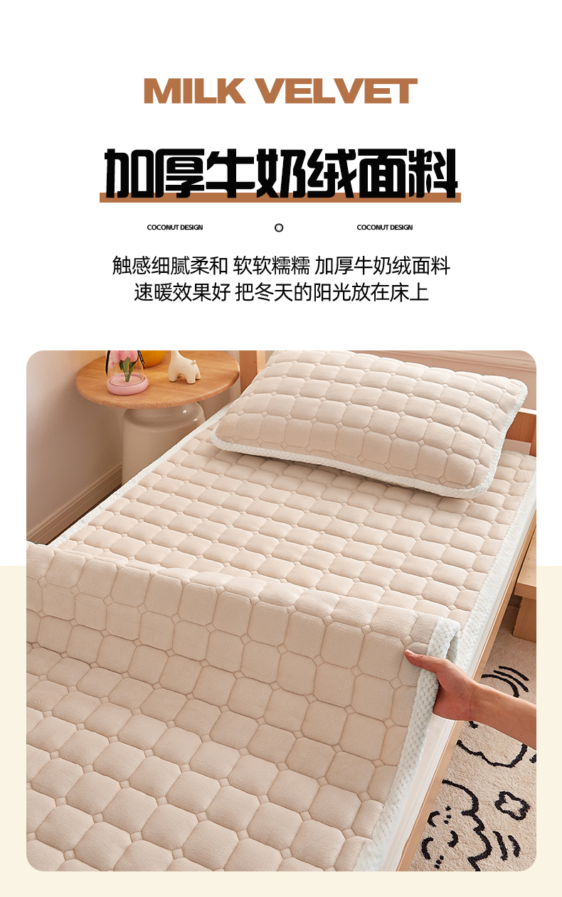 当前位置: 91家纺网 > 商品网购 > 床垫/床褥 > 普通床垫 > 东宇床垫 2025新款牛奶绒床褥学生床 奶咖