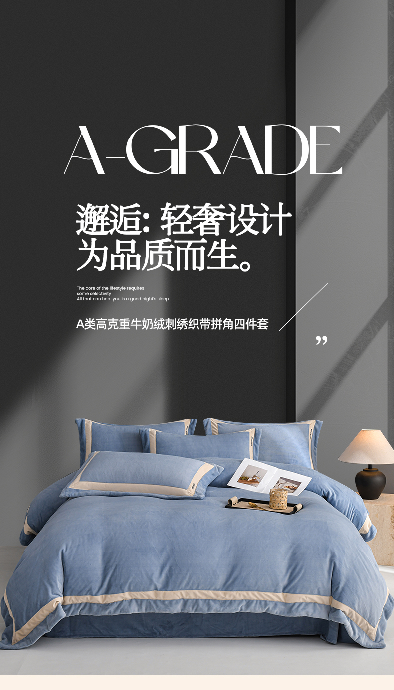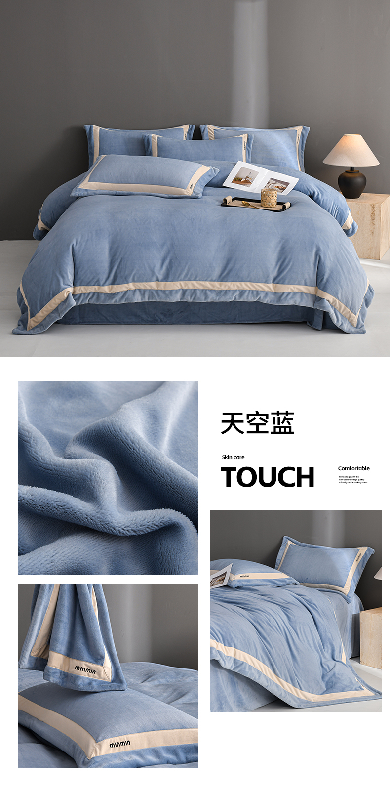 当前位置: 91家纺网 > 商品网购 > 床品套件 > 四件套 > 牛奶绒四件套 > 网客家纺 2024新款minmin牛奶绒刺绣四件套 minmin-天空蓝