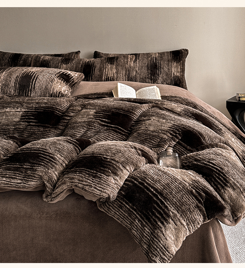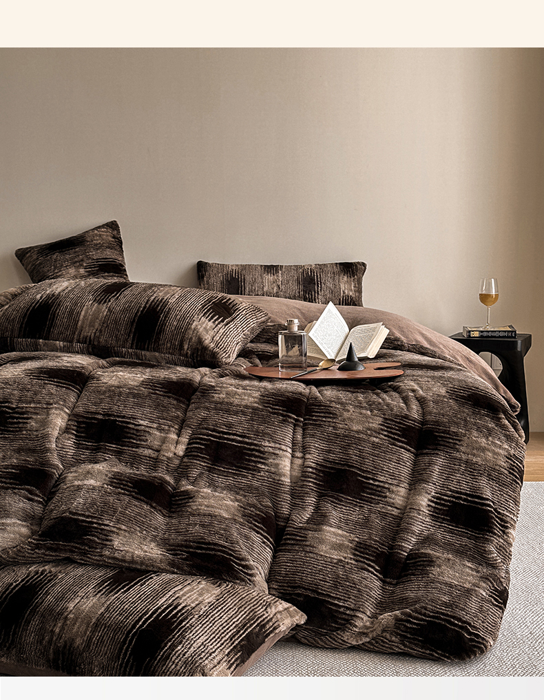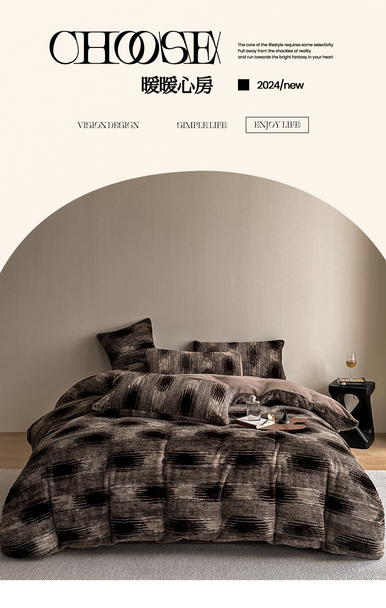 (总)网客家纺 2025新款羊毛绒牛奶绒夹棉床盖四件套,豹点-深灰,简格-黑色,简格-咖色,空间-红色,泥点-灰色,泥点-咖色,维奥-灰色,斜格-灰色,斜格-墨绿