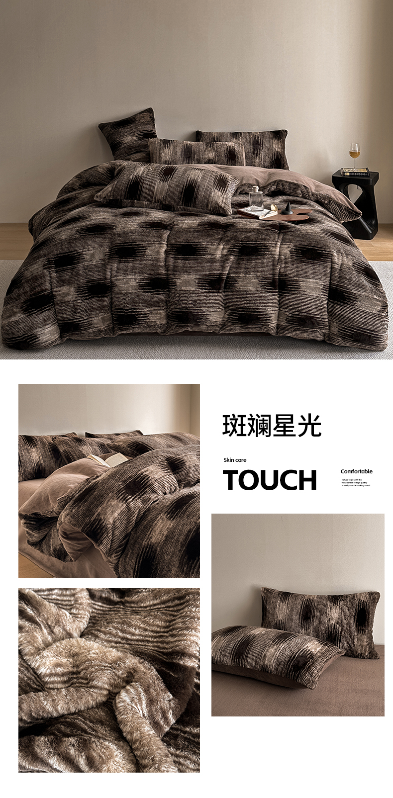 网客家纺 2024新款兔毛绒牛奶绒印花四件套-繁花系列 斑斓星光