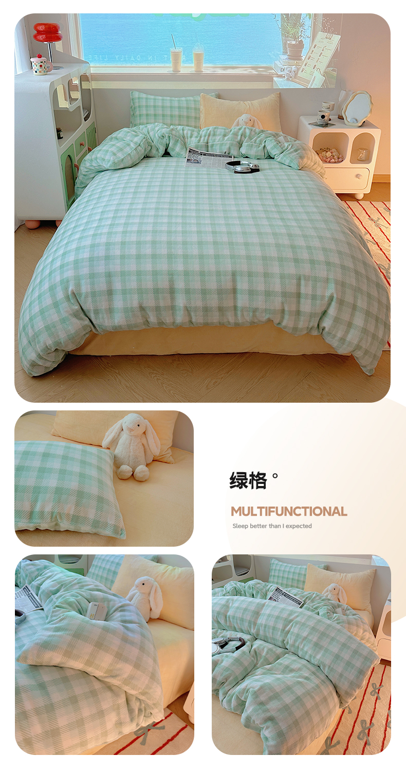 商品名称:美乐迪家纺 2024新款牛奶绒格子四件套系列 绿格