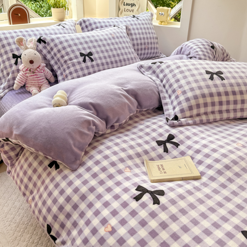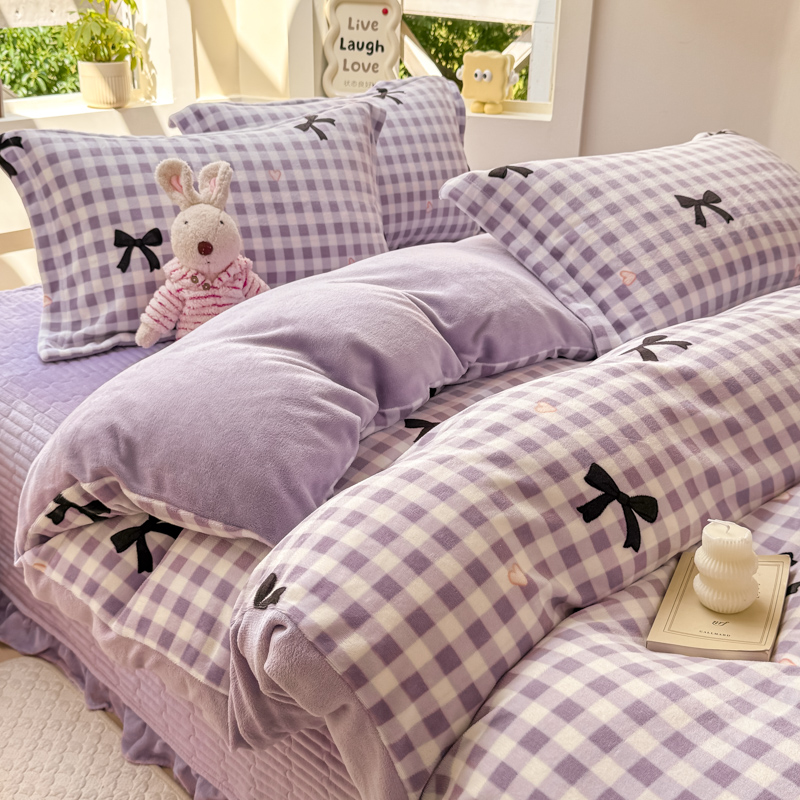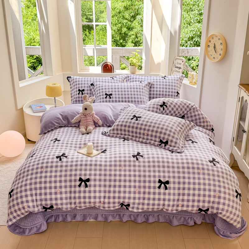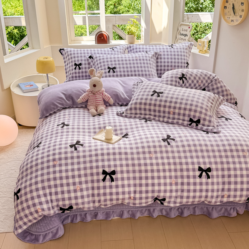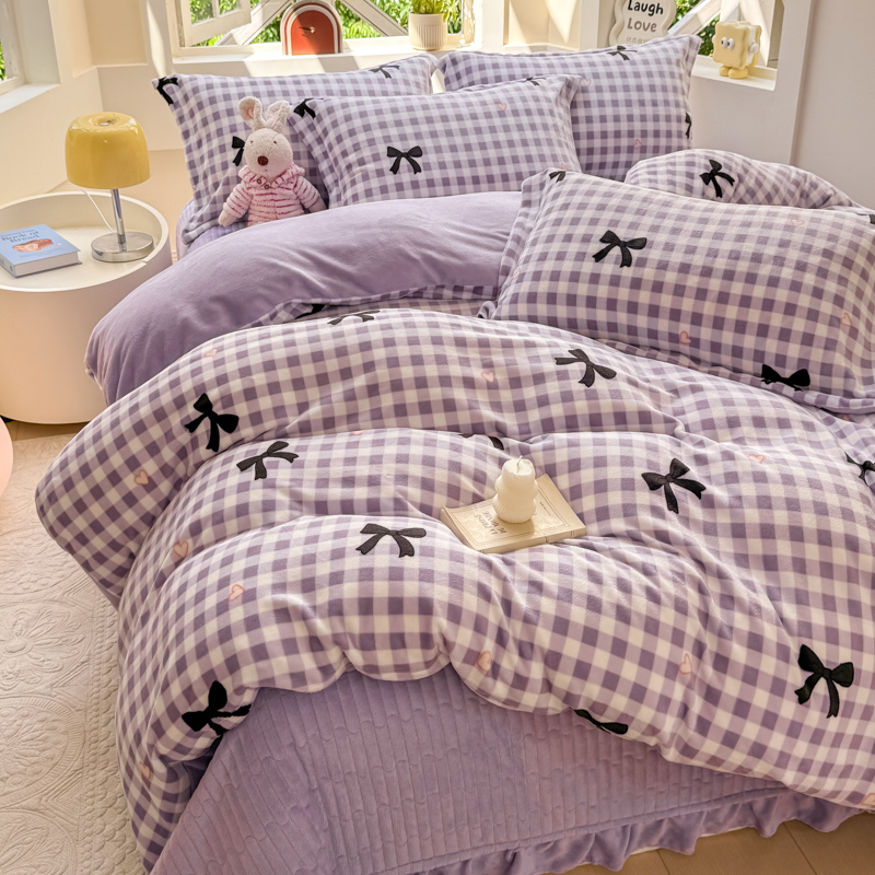梦可莱家居 2024秋冬牛奶绒韩系ins印花床盖四件套 紫色蝴蝶梦