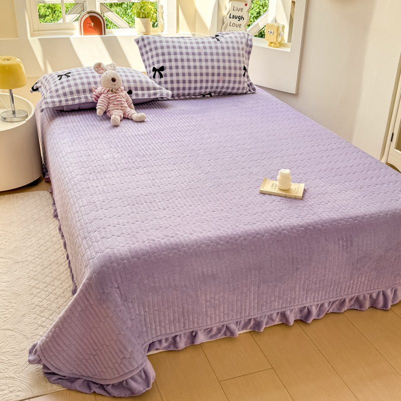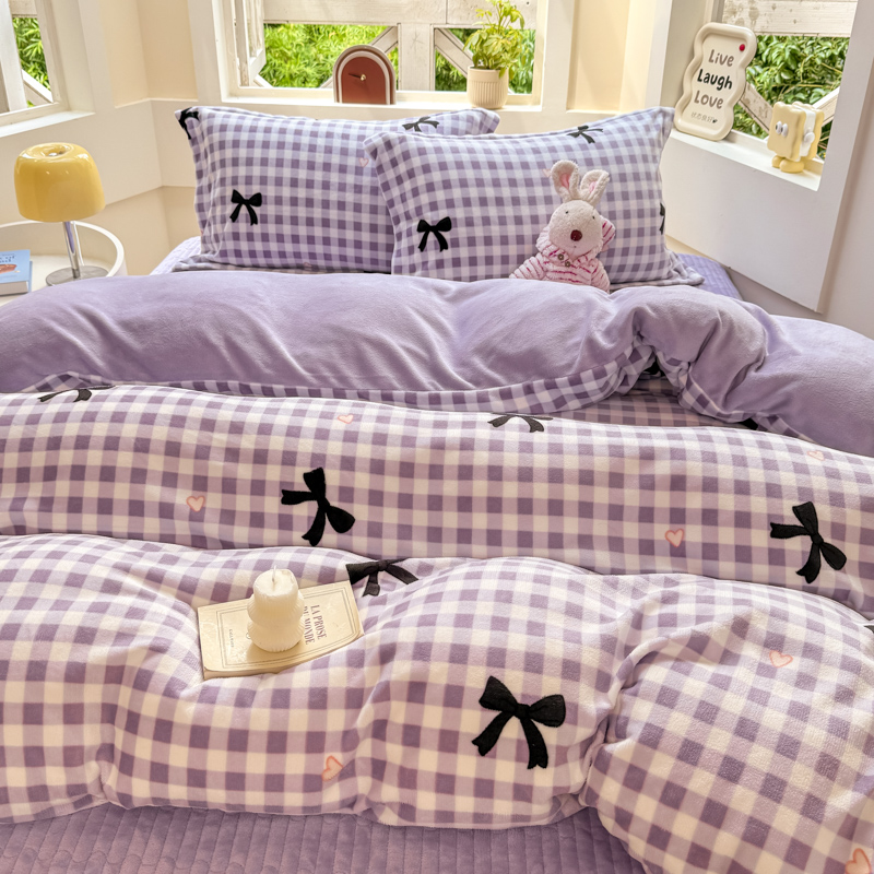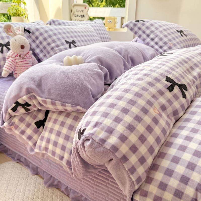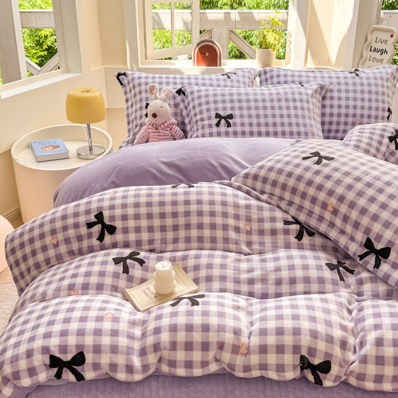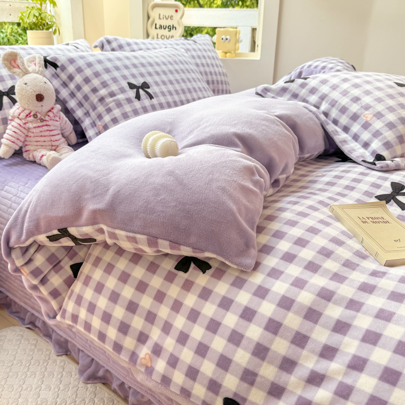 梦可莱家居 2024秋冬牛奶绒韩系ins印花床盖四件套 紫色蝴蝶梦