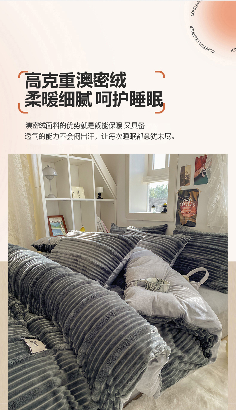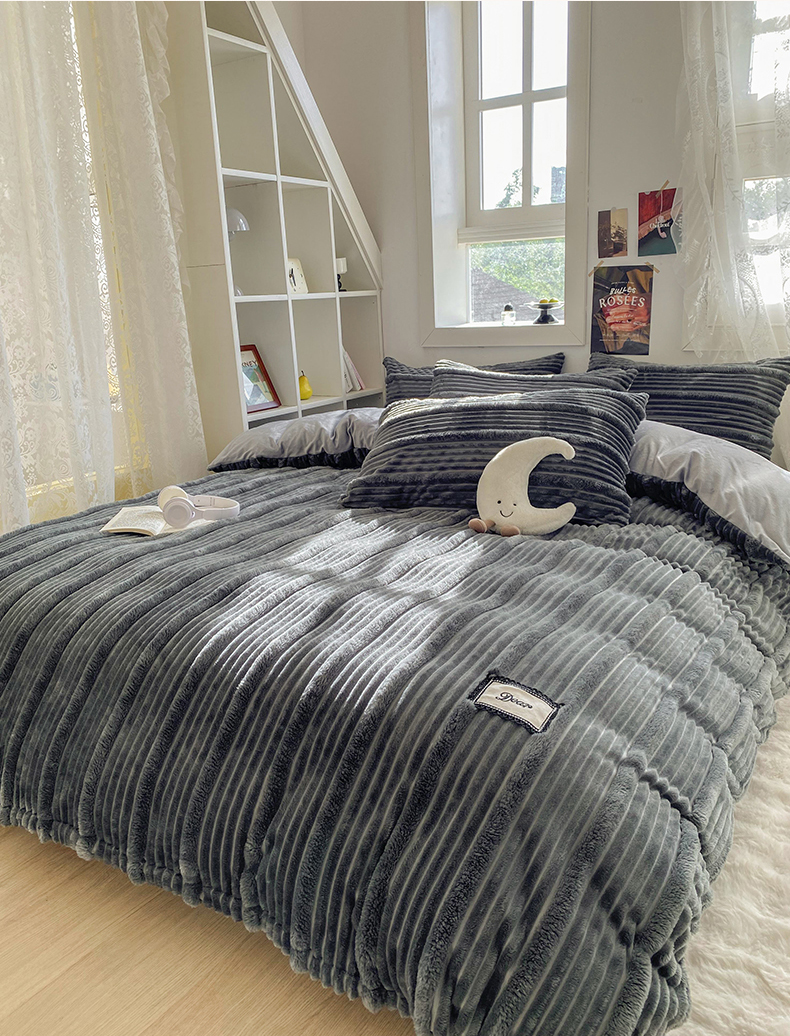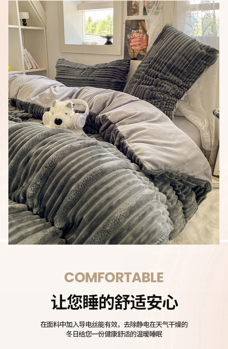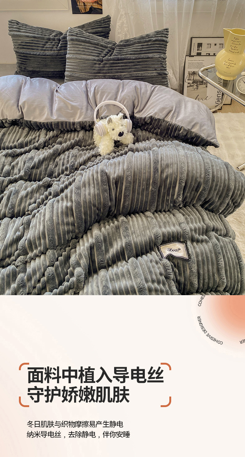 商品名称:2025新款秋冬澳密绒保暖四件套-雪瑞系列 雪瑞-深灰