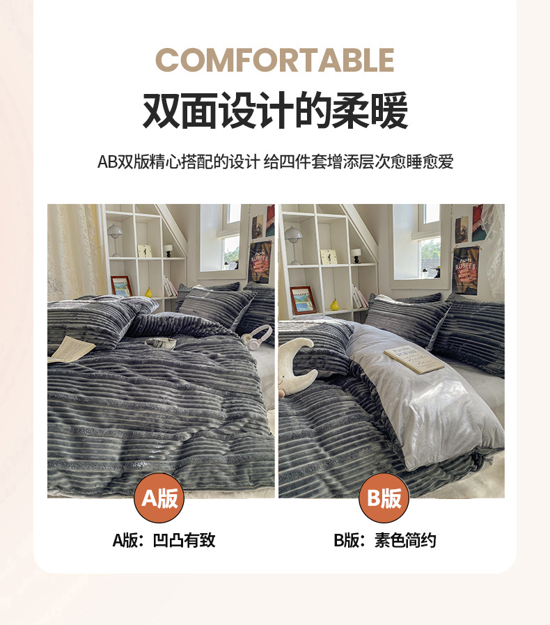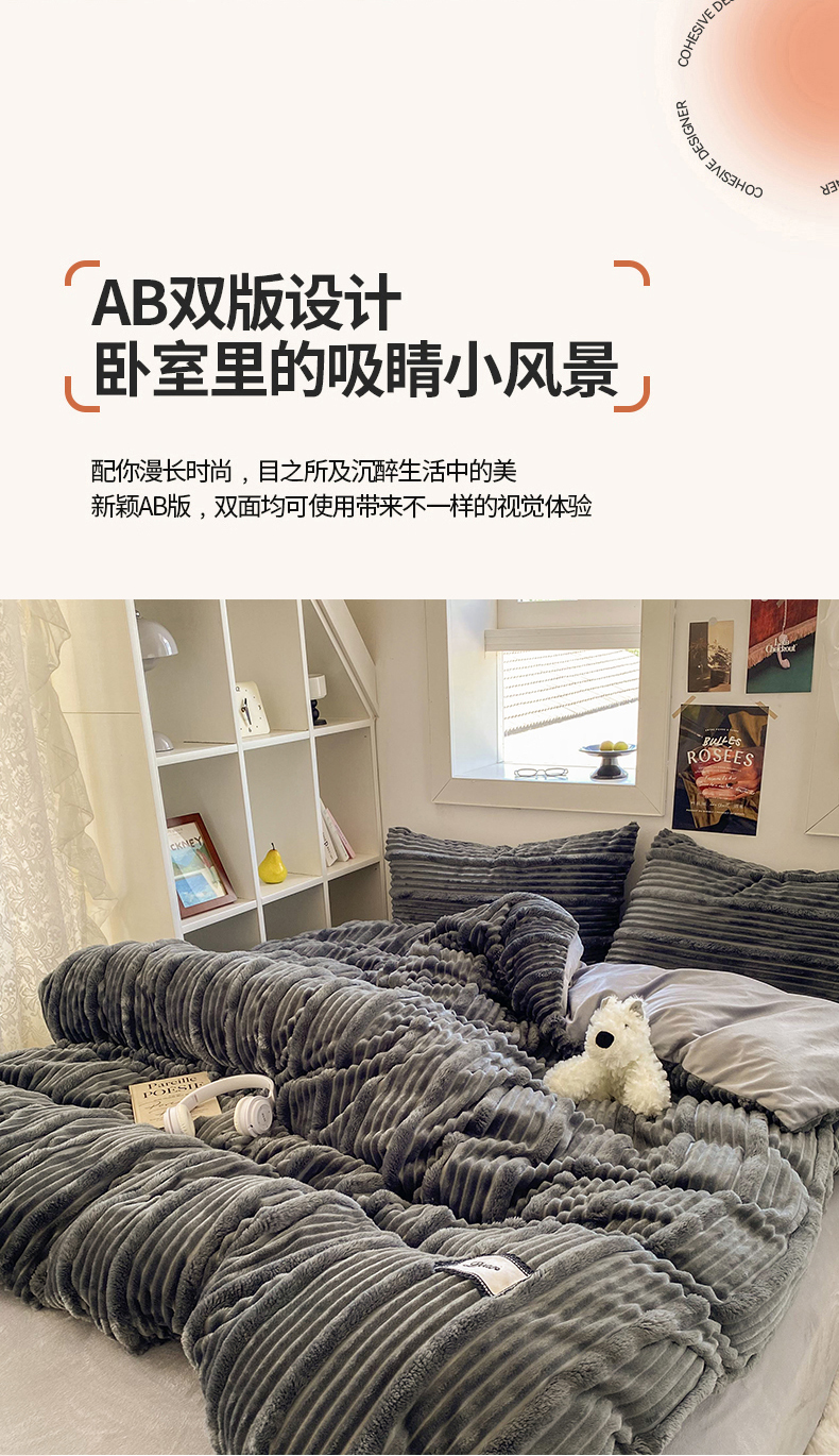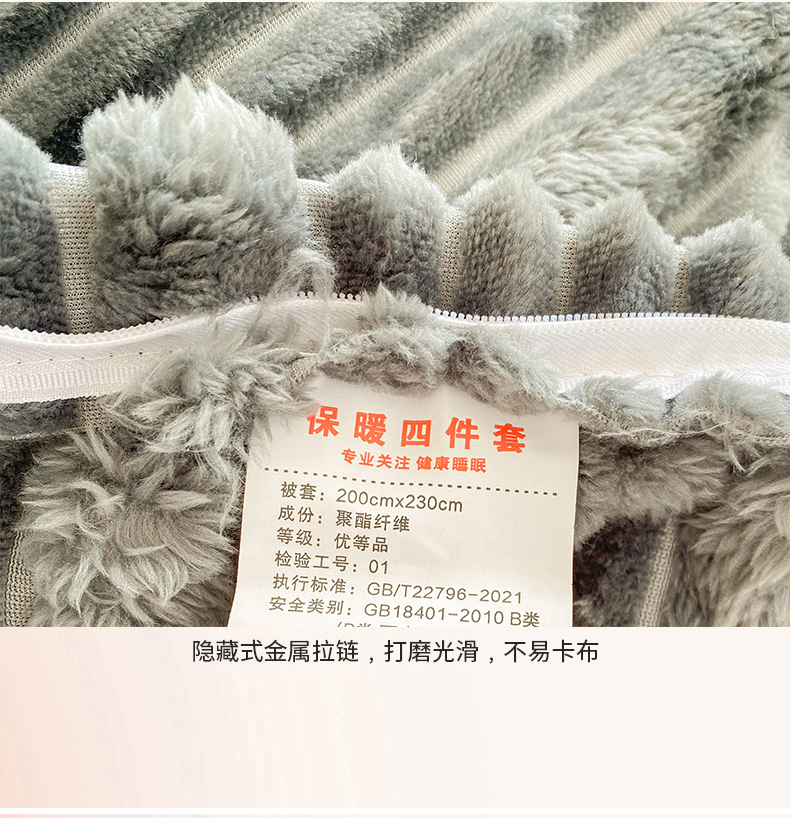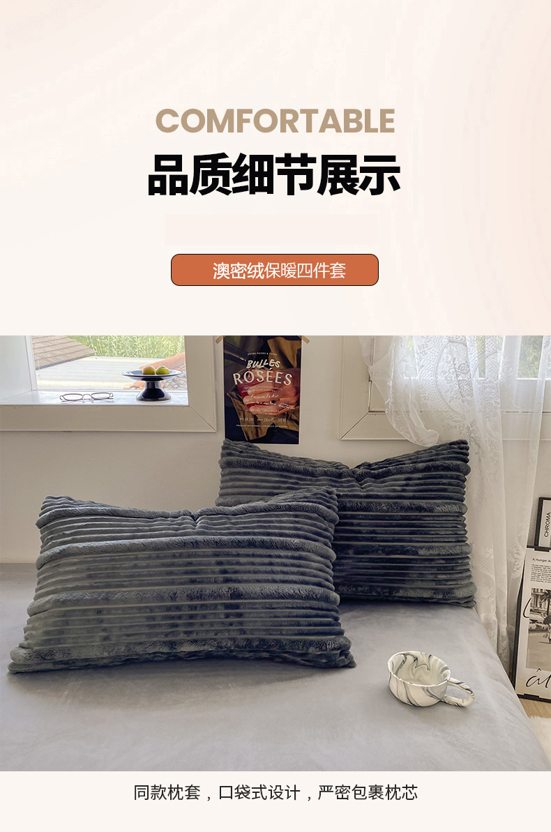 商品名称:2025新款秋冬澳密绒保暖四件套-雪瑞系列 雪瑞-深灰