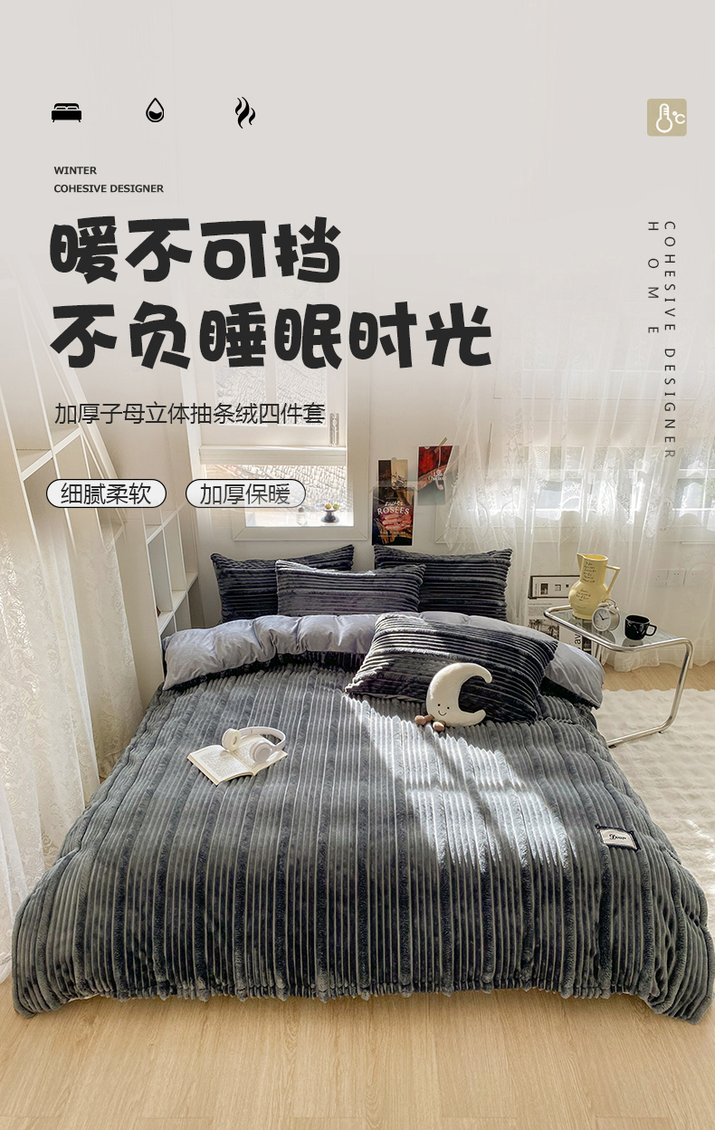 (总)潮邦创意家居 2025新款冬季阳离子提花云纹绒工艺四件套-绒眠小筑系列,绒眠小筑-清新粉,绒眠小筑-浅驼,绒眠小筑-香草绿,绒眠小筑-星灰,绒眠小筑-耀黑