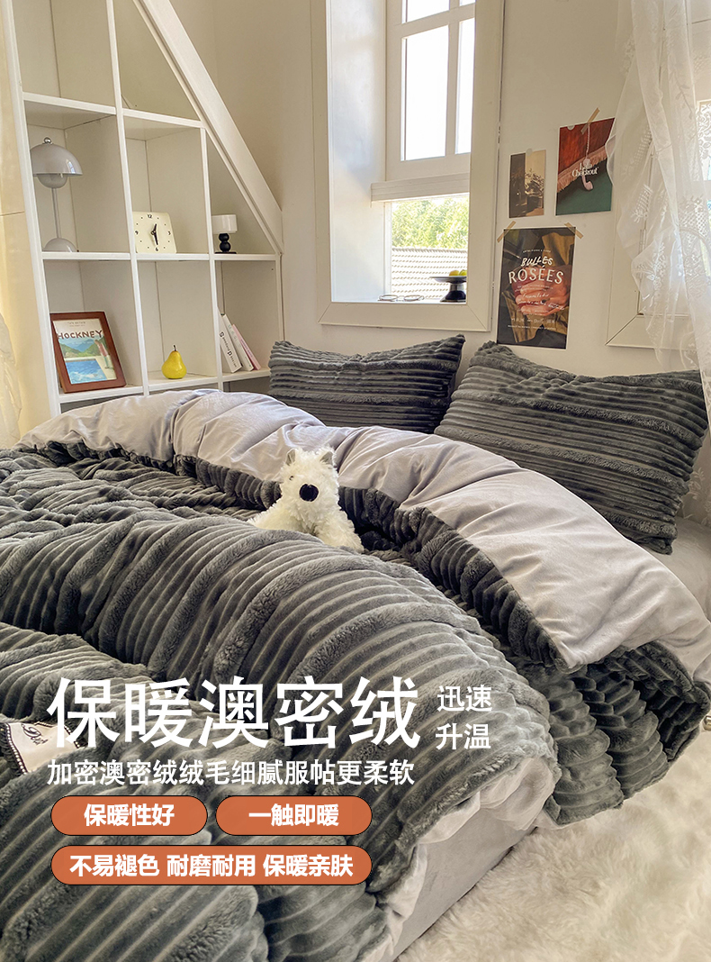 2025新款秋冬澳密绒保暖四件套-雪瑞系列 雪瑞-深灰