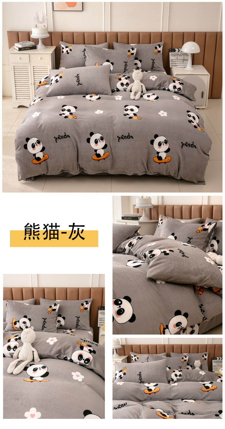当前位置: 91家纺网 > 商品网购 > 床品套件 > 四件套 > 牛奶绒四件套 > 乐居坊 2024新款高克重牛奶绒印花保暖四件套 熊猫-灰