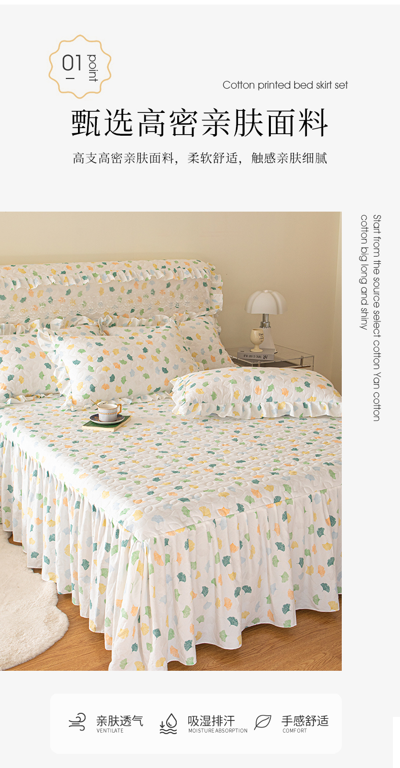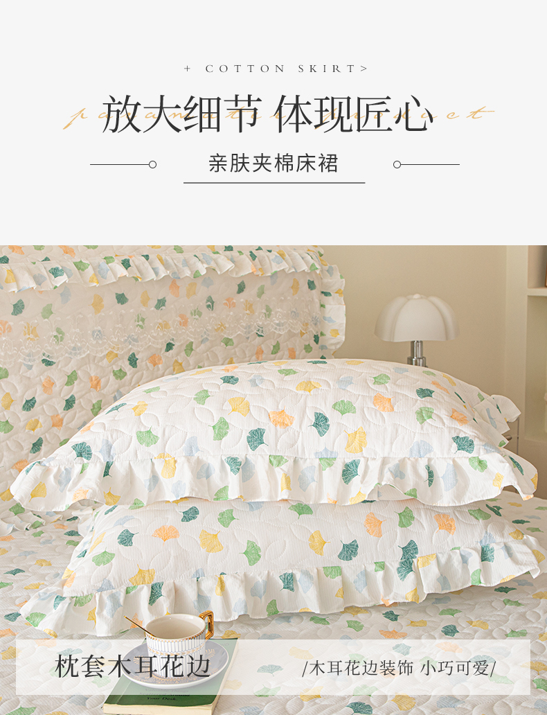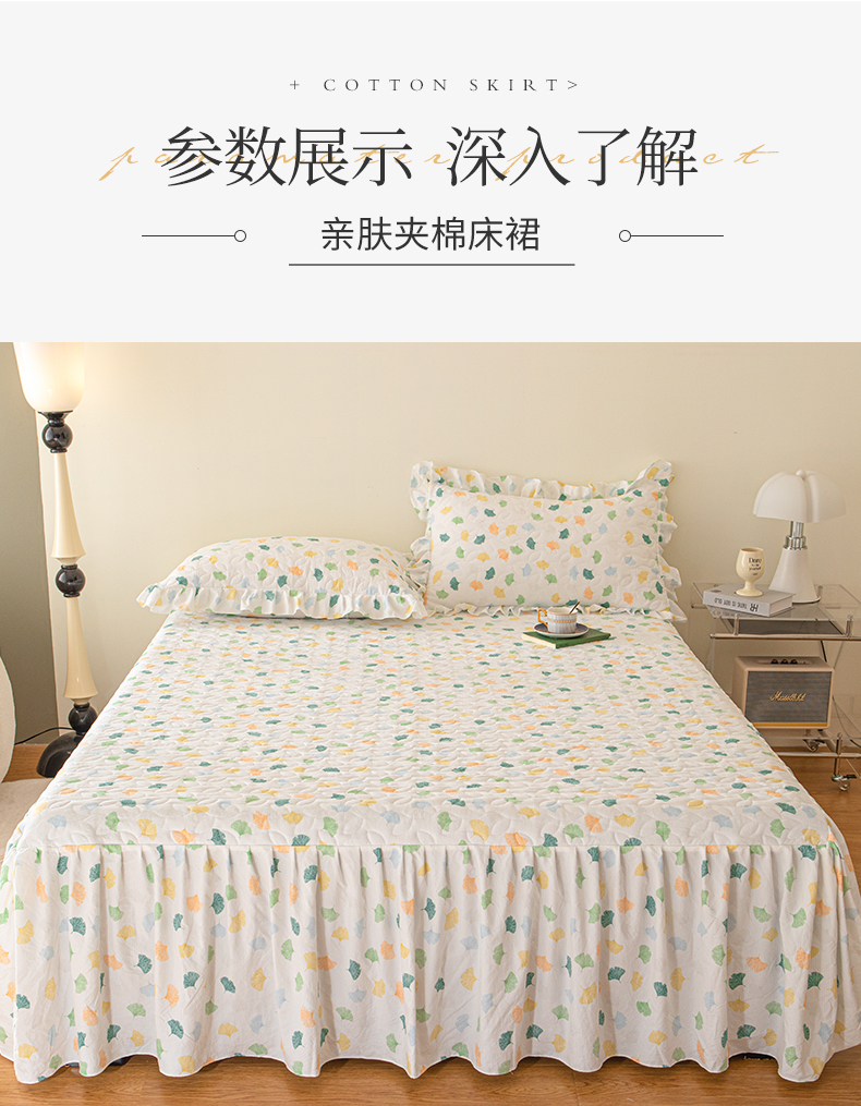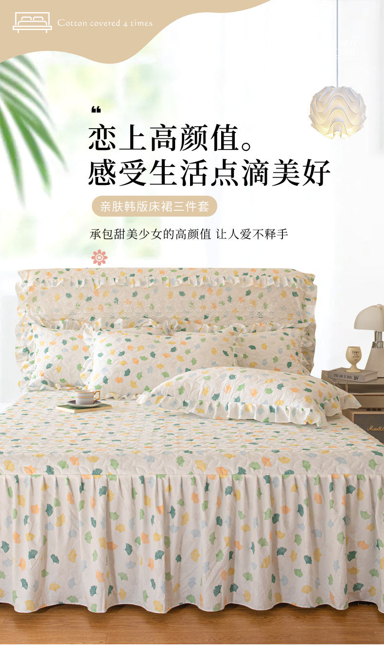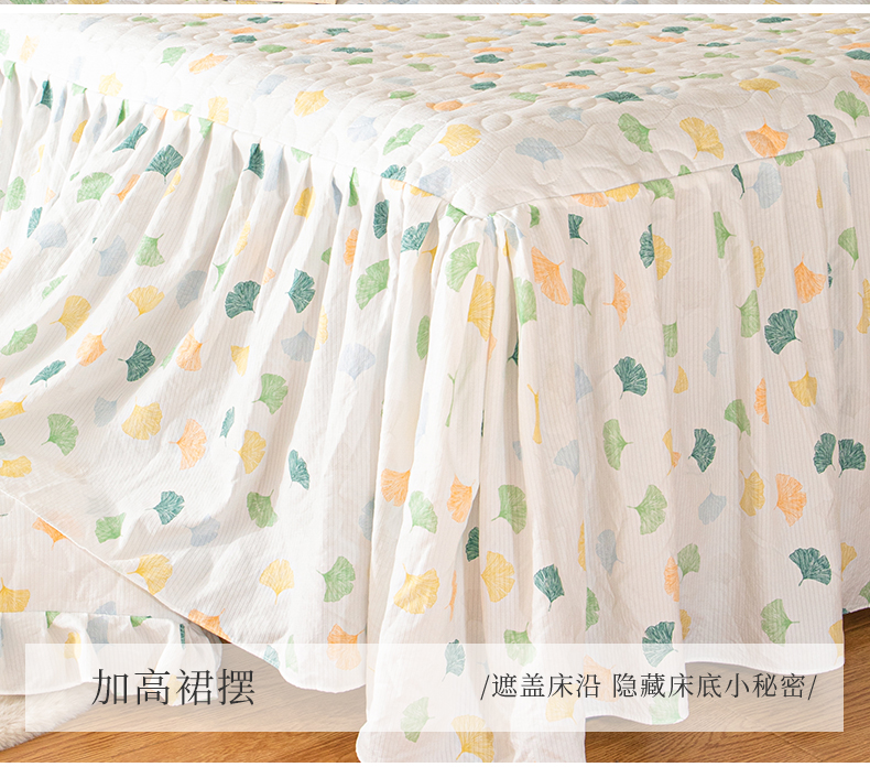 商品名称:十个点家纺 2024新款云锦棉印花床裙三件套-晚秋系列 杏叶繁花