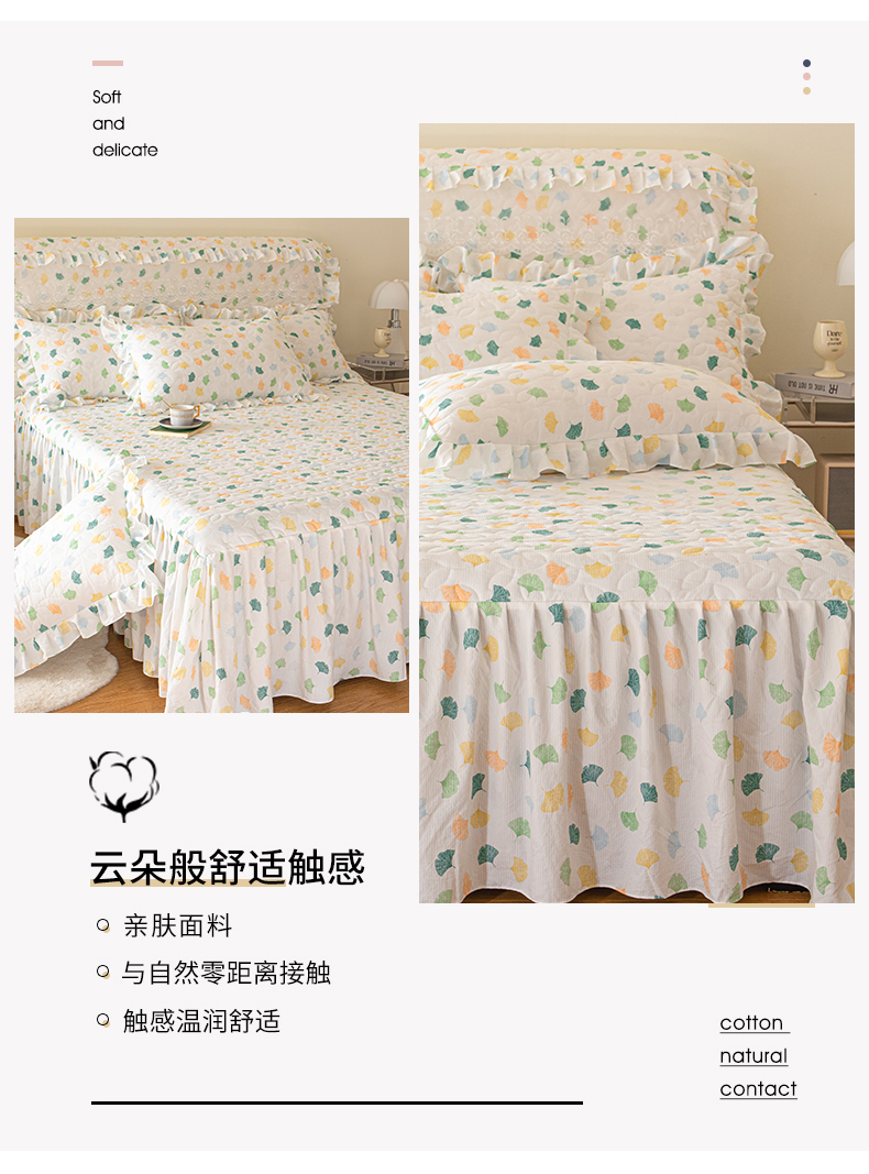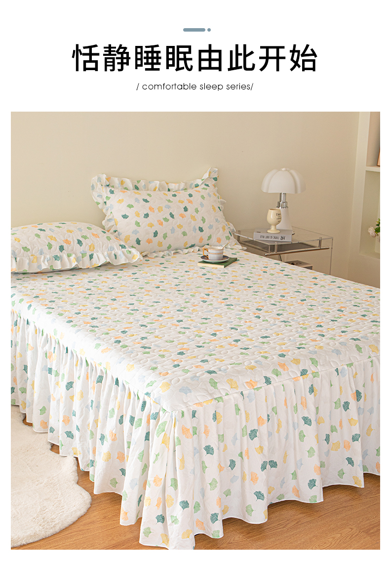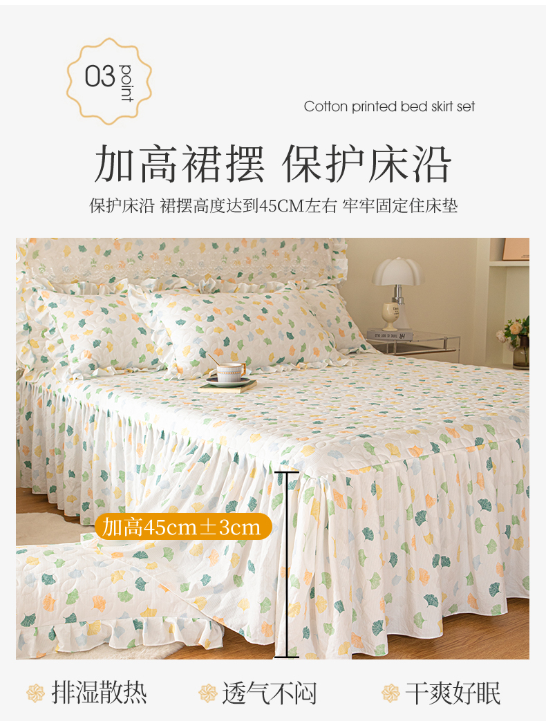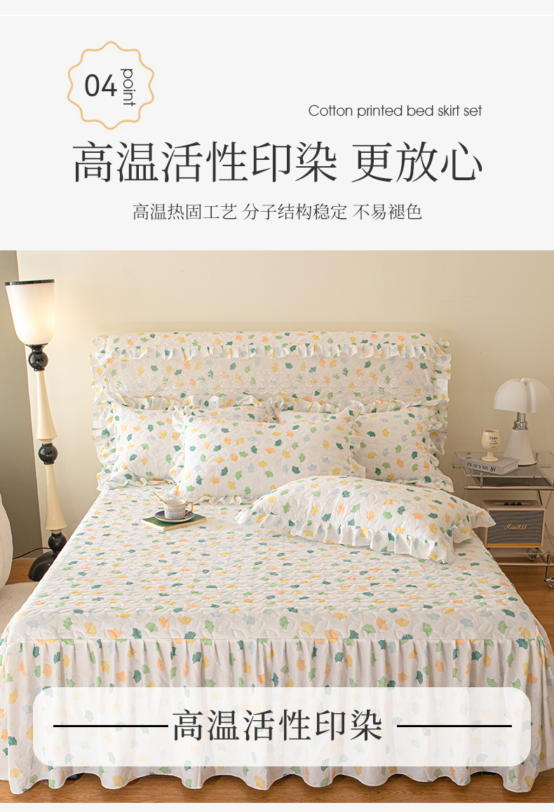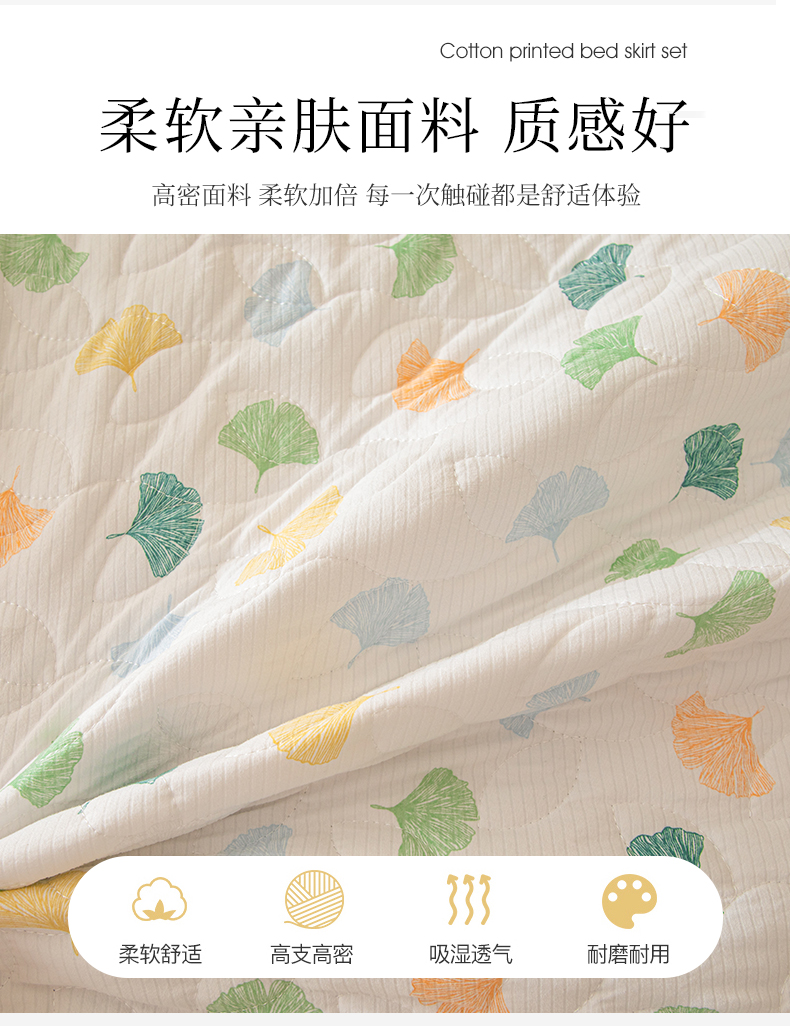 商品名称:十个点家纺 2024新款云锦棉印花床裙三件套-晚秋系列 杏叶繁花