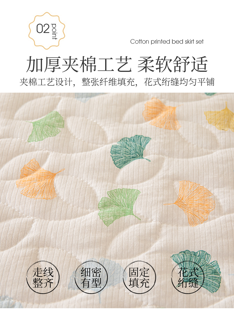 十个点家纺 2024新款云锦棉印花床裙三件套-晚秋系列 杏叶繁花