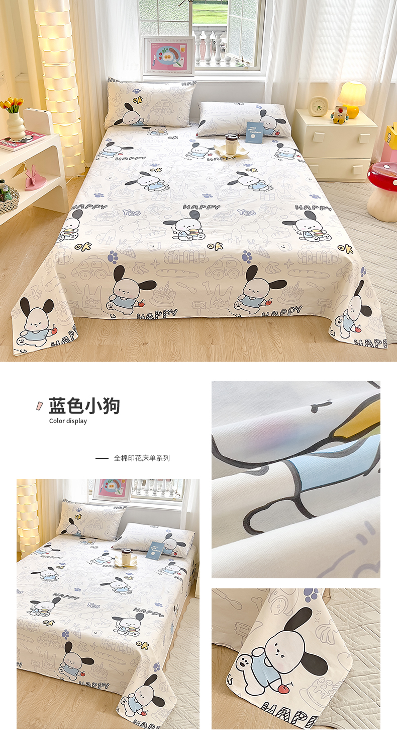 拾物记 2024新款全棉喷气12868床单 蓝色小狗