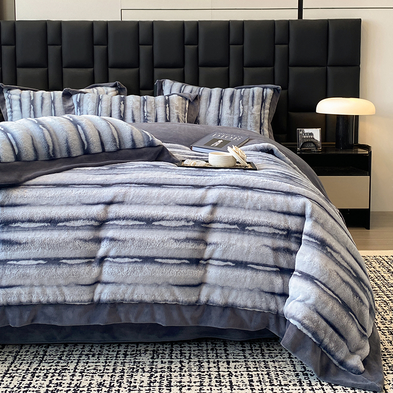 若未家居 LOVEWE HOUSE 2025秋冬皮草套件A版500克丹麦貂B版240克全消光牛奶绒高端四件套伊芙劳伦 伊夫劳伦-蓝灰