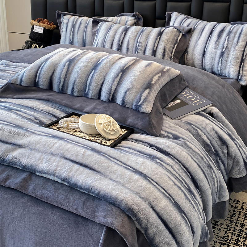 商品名称:若未家居 LOVEWE HOUSE 2025秋冬皮草套件A版500克丹麦貂B版240克全消光牛奶绒高端四件套伊芙劳伦 伊夫劳伦-蓝灰