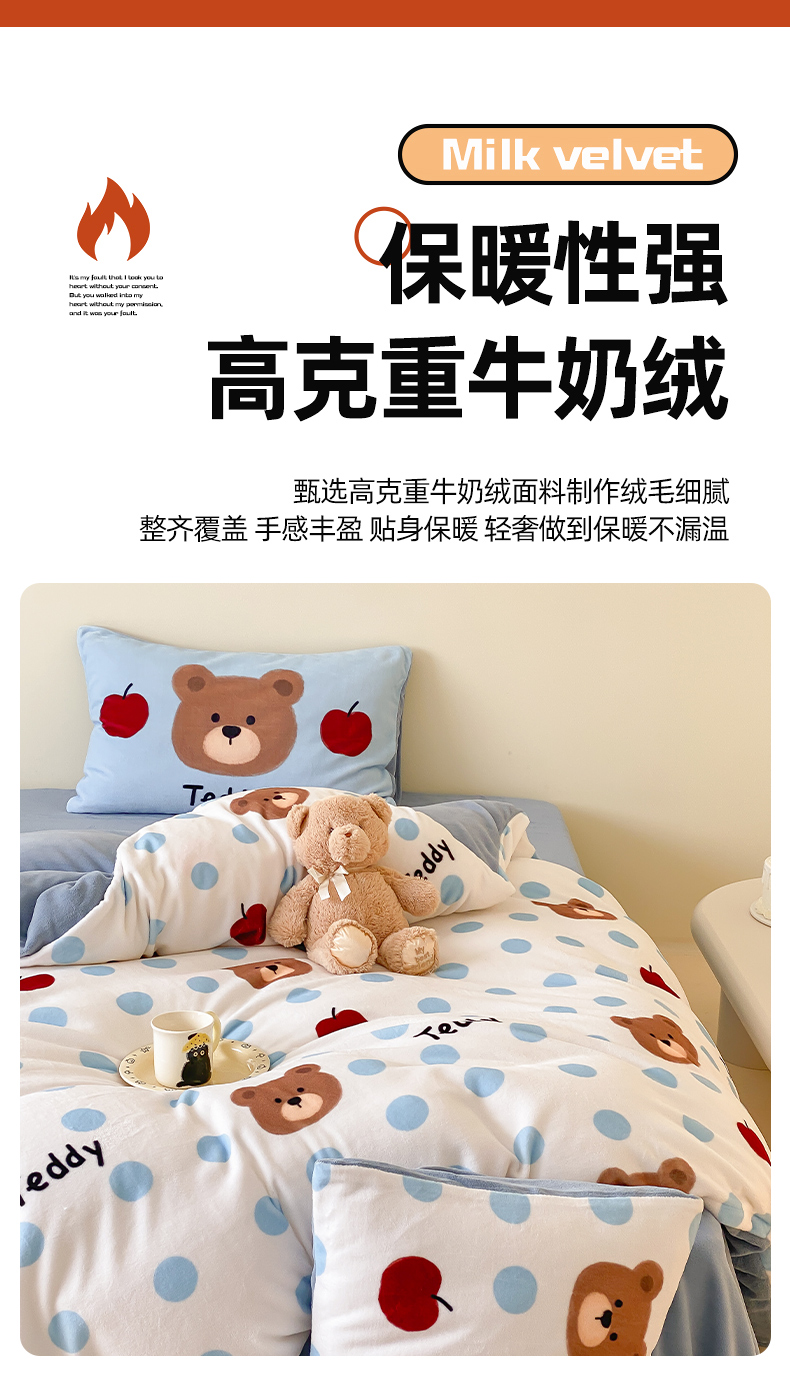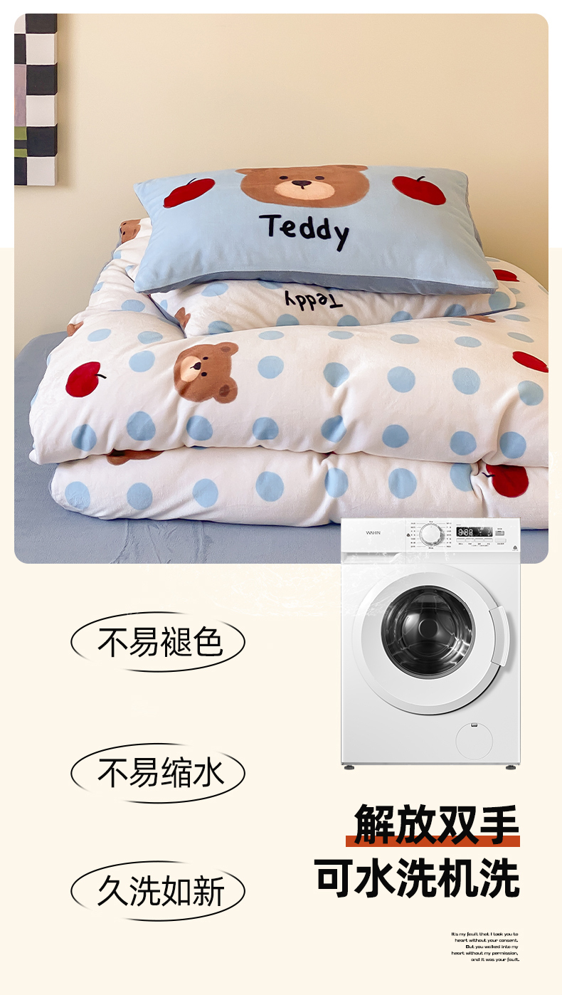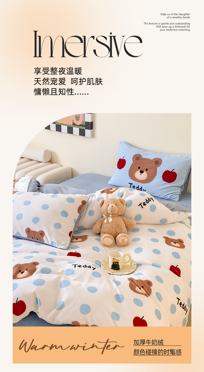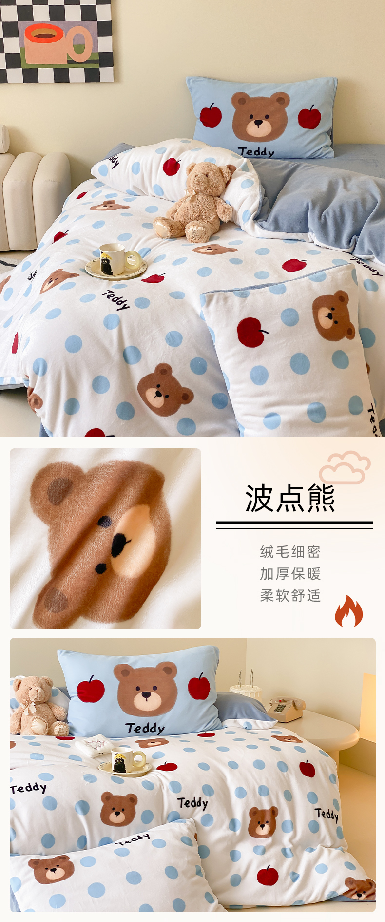 商品名称:时光里 2024新款数码印花牛奶绒四件套 波点熊