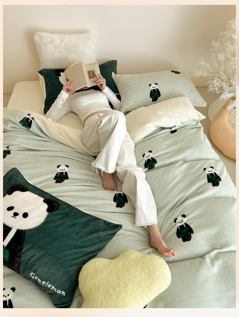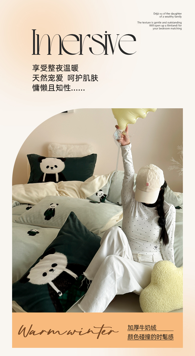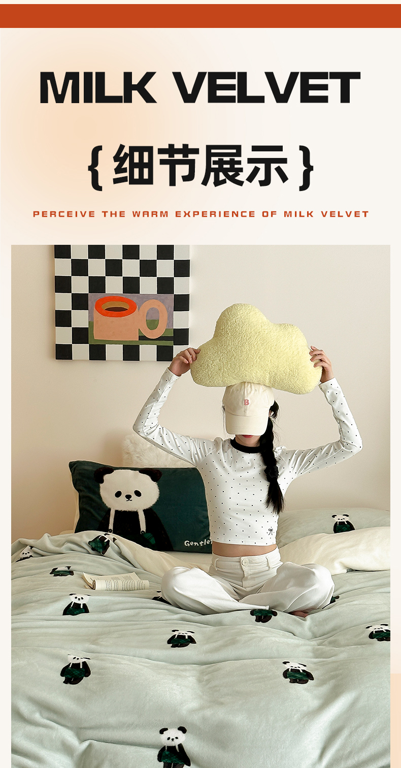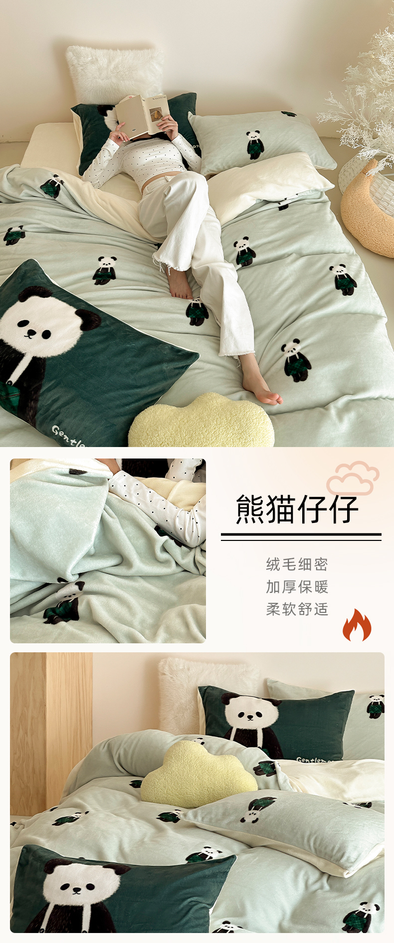 时光里 2024新款ins风牛奶绒四件套 熊猫仔仔