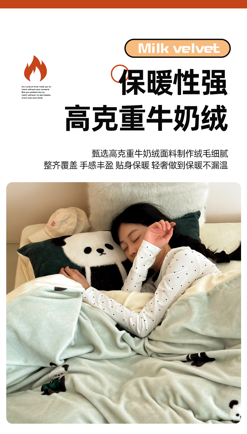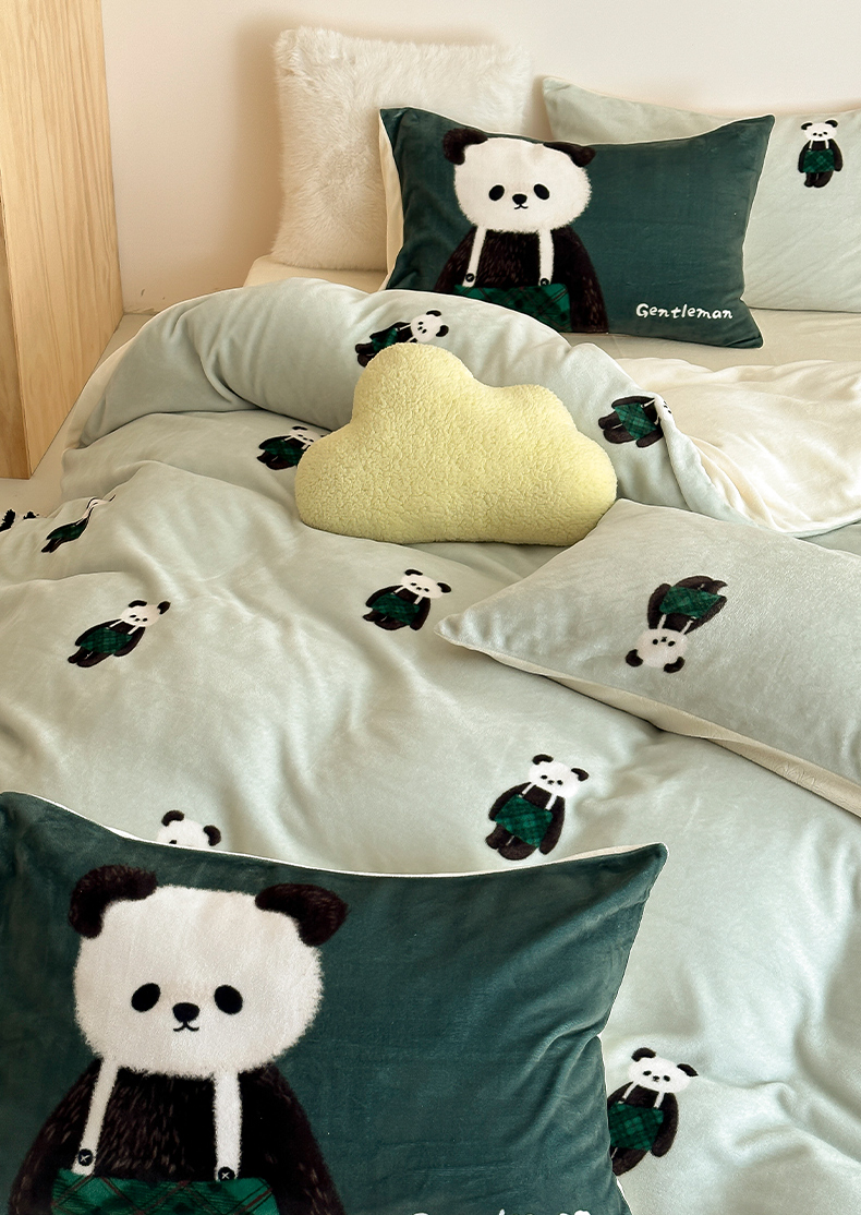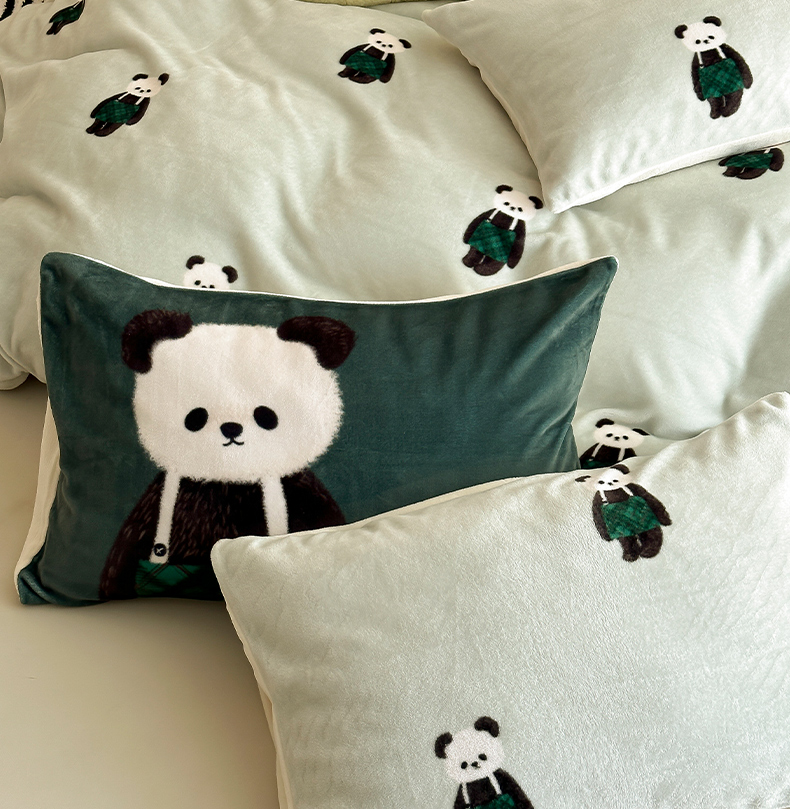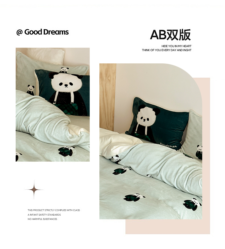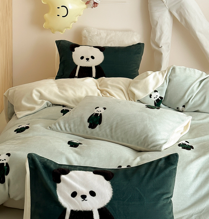 时光里 2024新款ins风牛奶绒四件套 熊猫仔仔