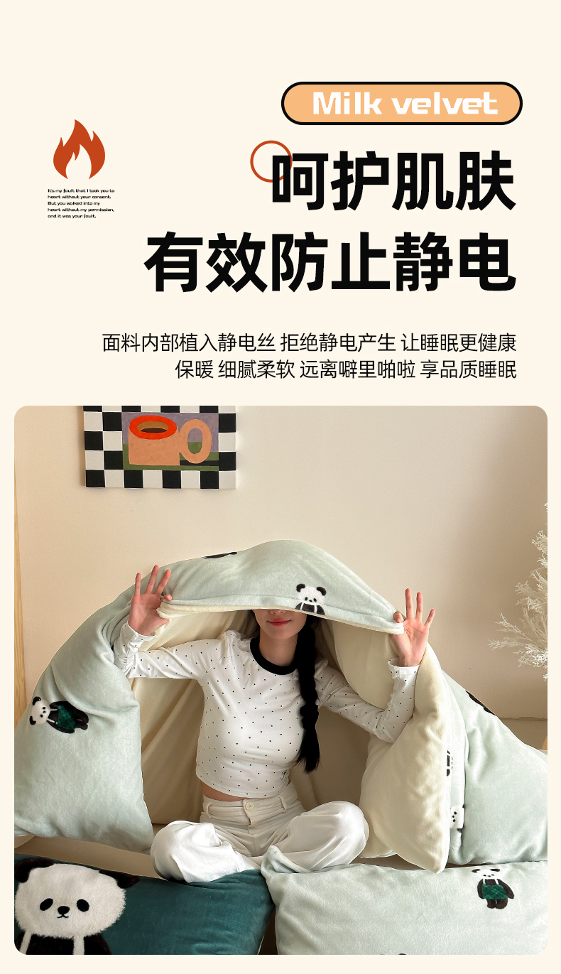 商品名称:时光里 2024新款ins风牛奶绒四件套 熊猫仔仔