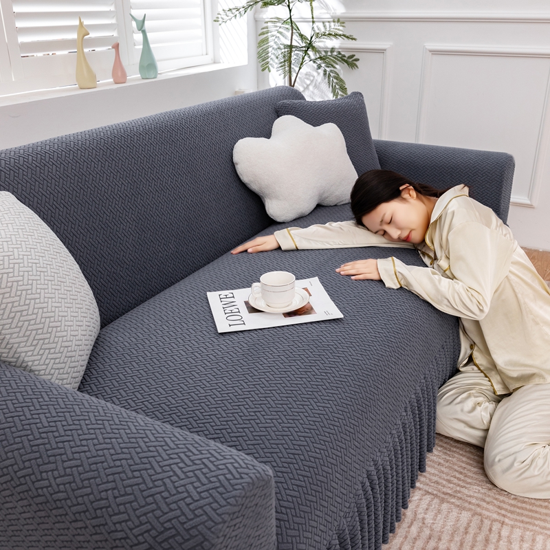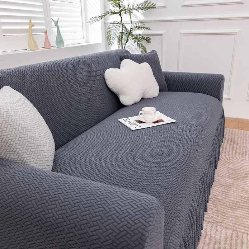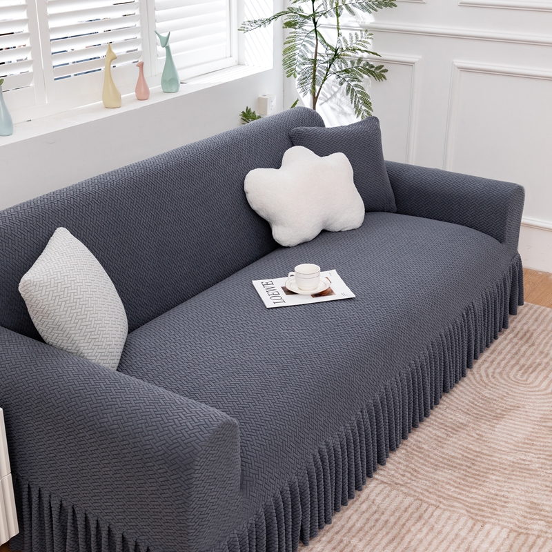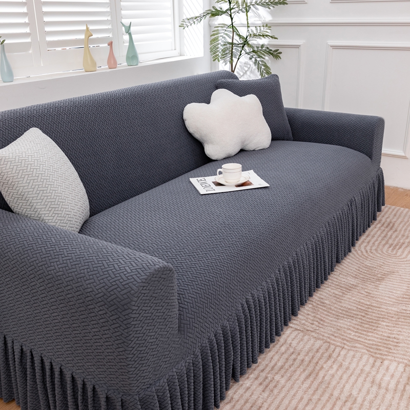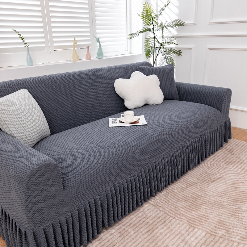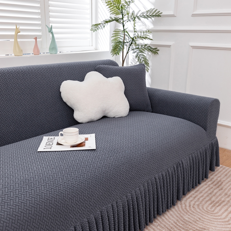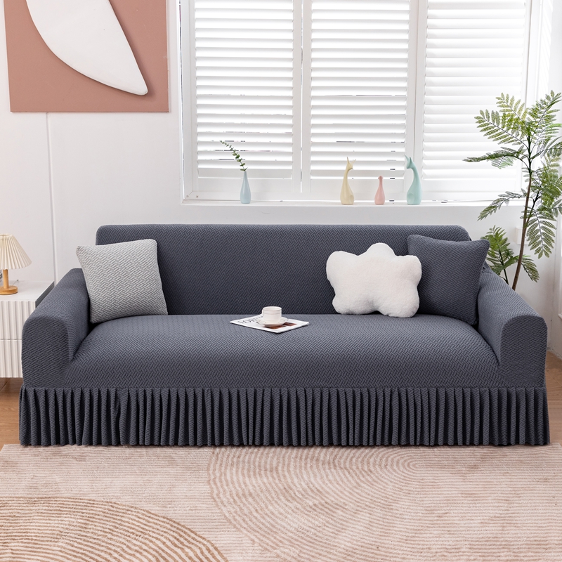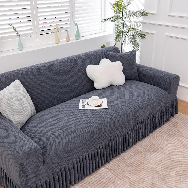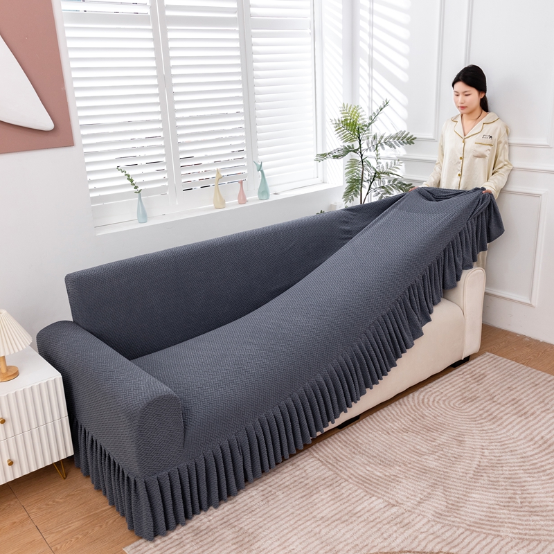 沐沐家纺 2026新款摇粒绒裙边沙发套 金属灰