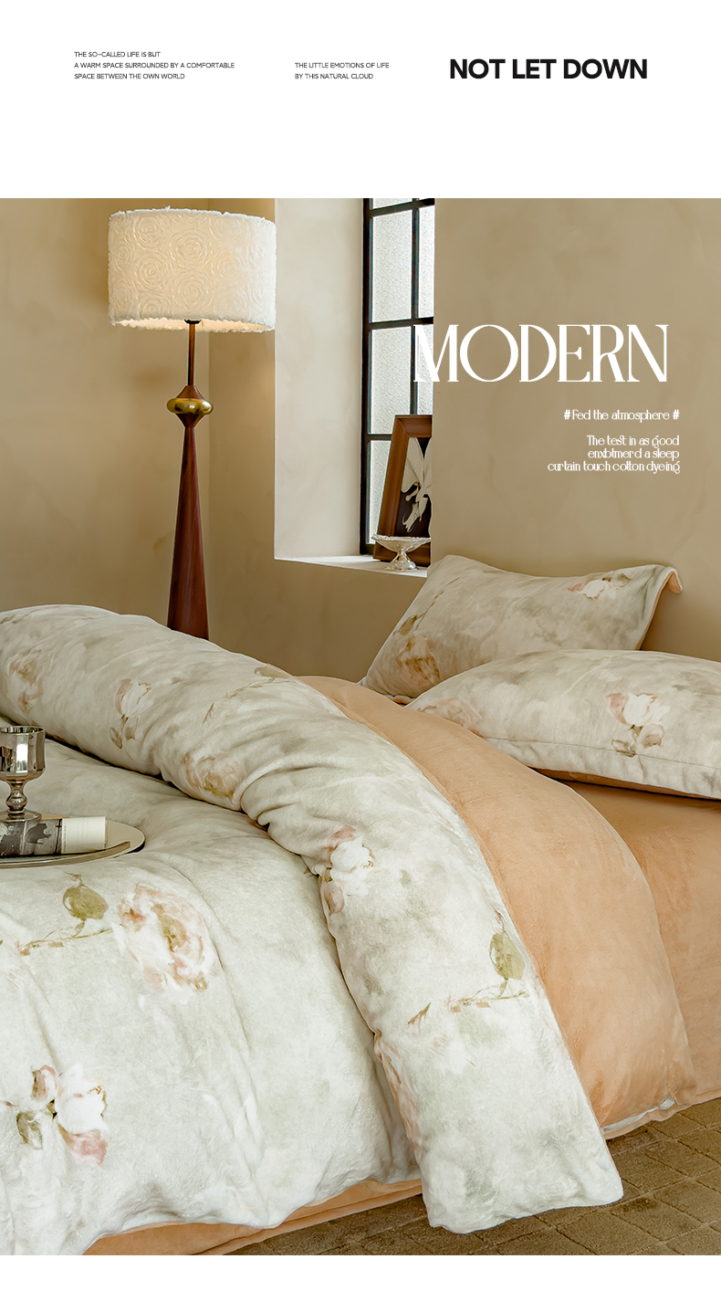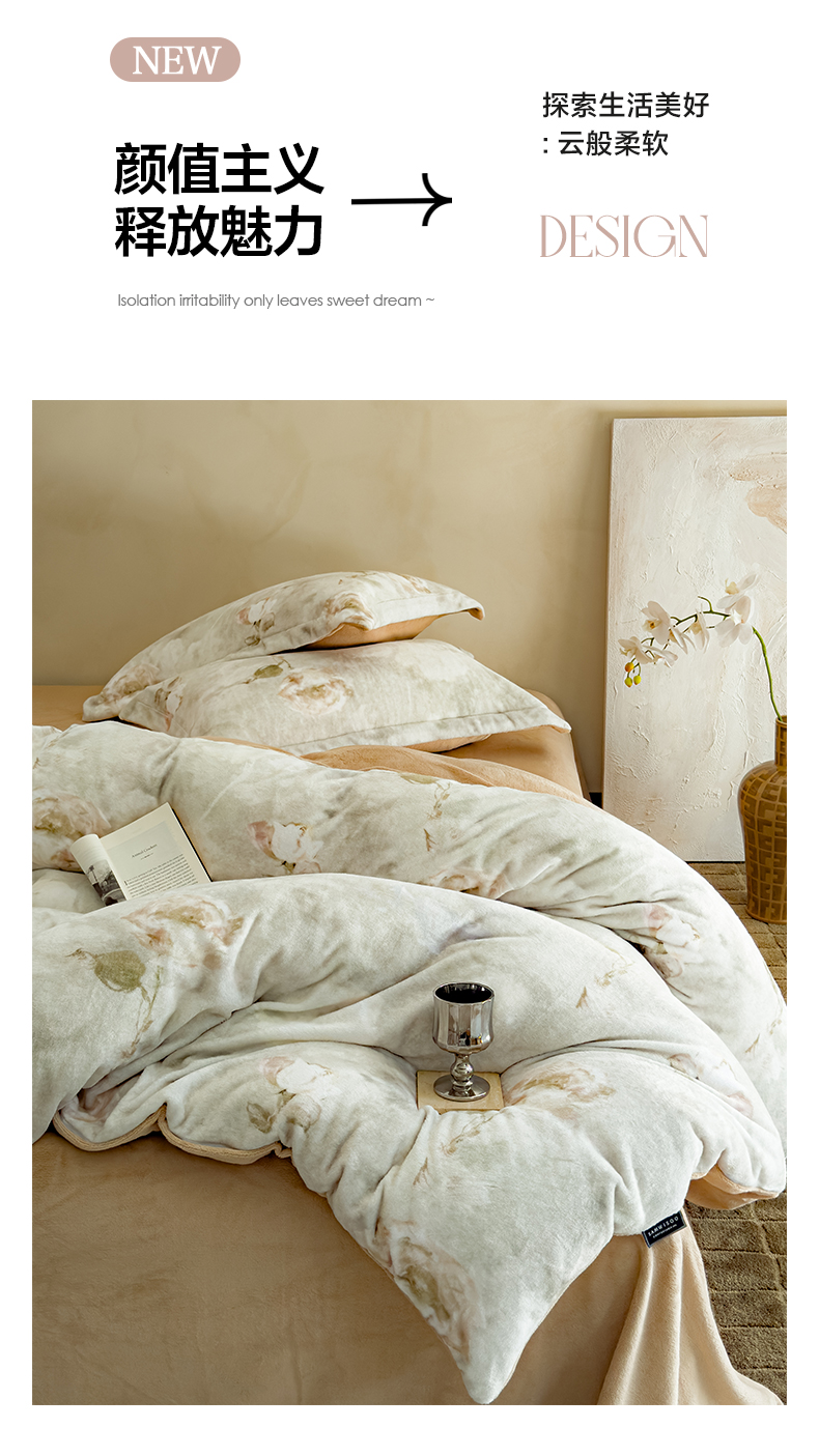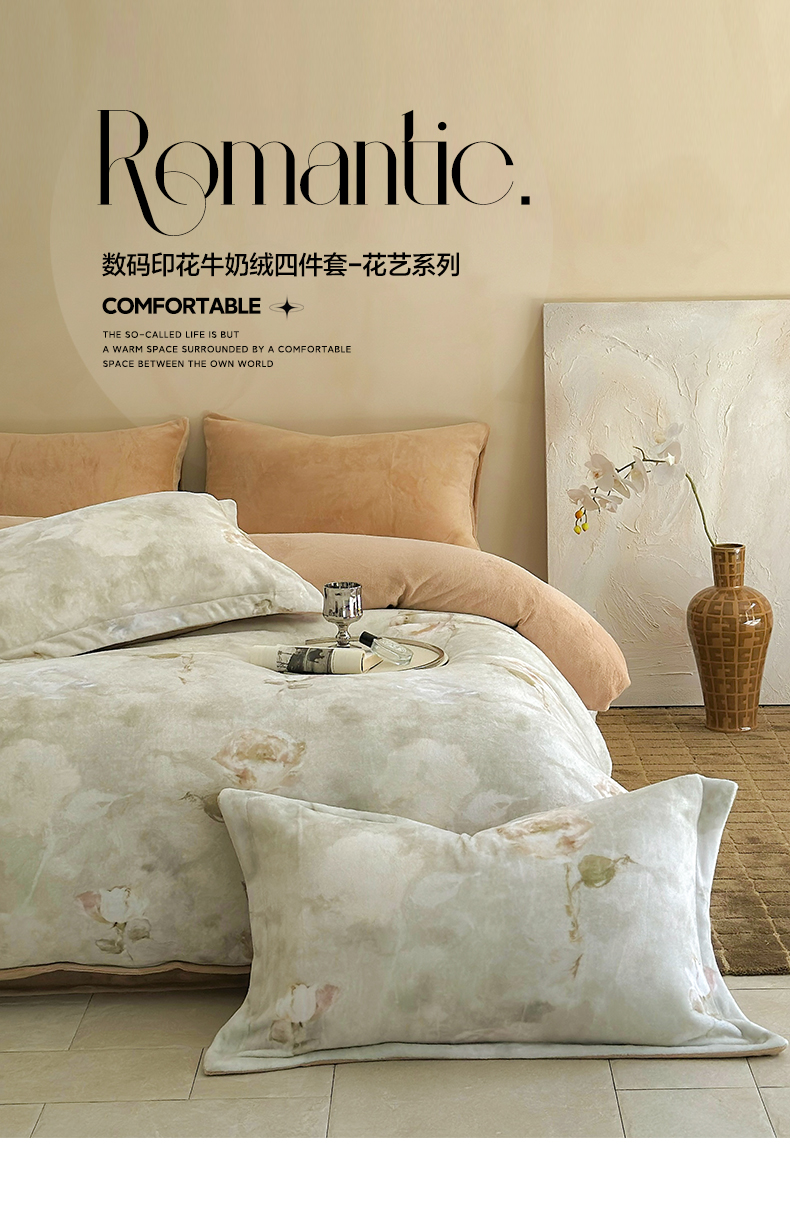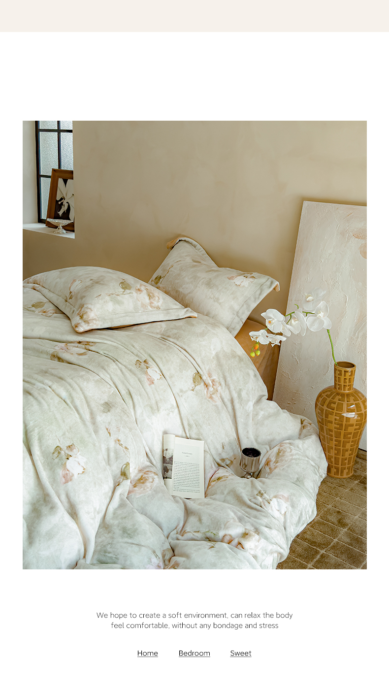 商品名称:三味舒屋 2024新款小清新数码印花牛奶绒四件套-花艺系列 南烟