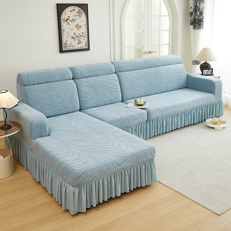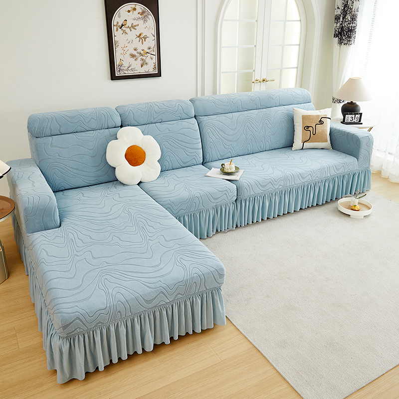 当前位置: 91家纺网 > 商品网购 > 居家布艺 > 坐垫/椅垫/沙发垫 > 沙发垫 > 丝绮鹿 2024新款雕花绒曲意系列沙发套裙边款(贵妃图) 淡蓝