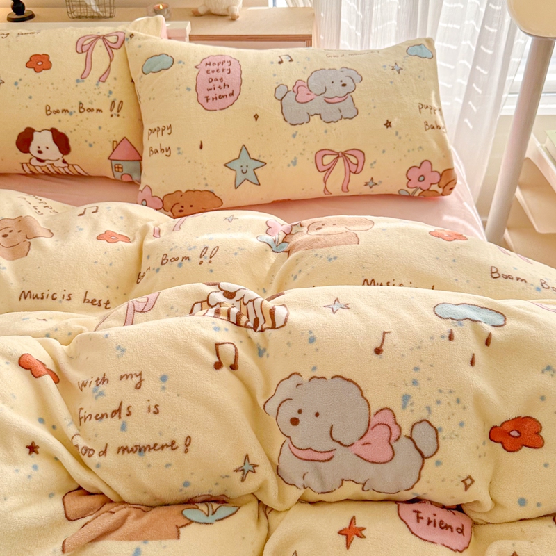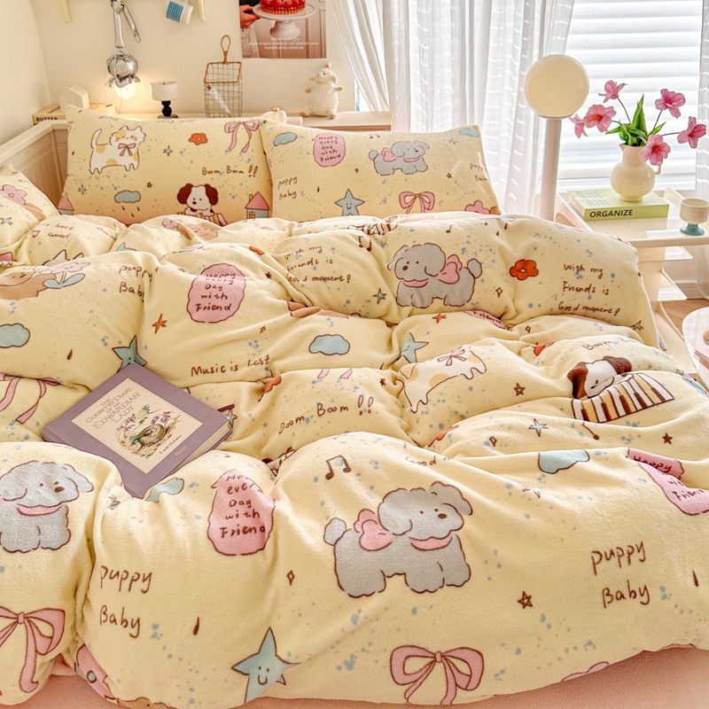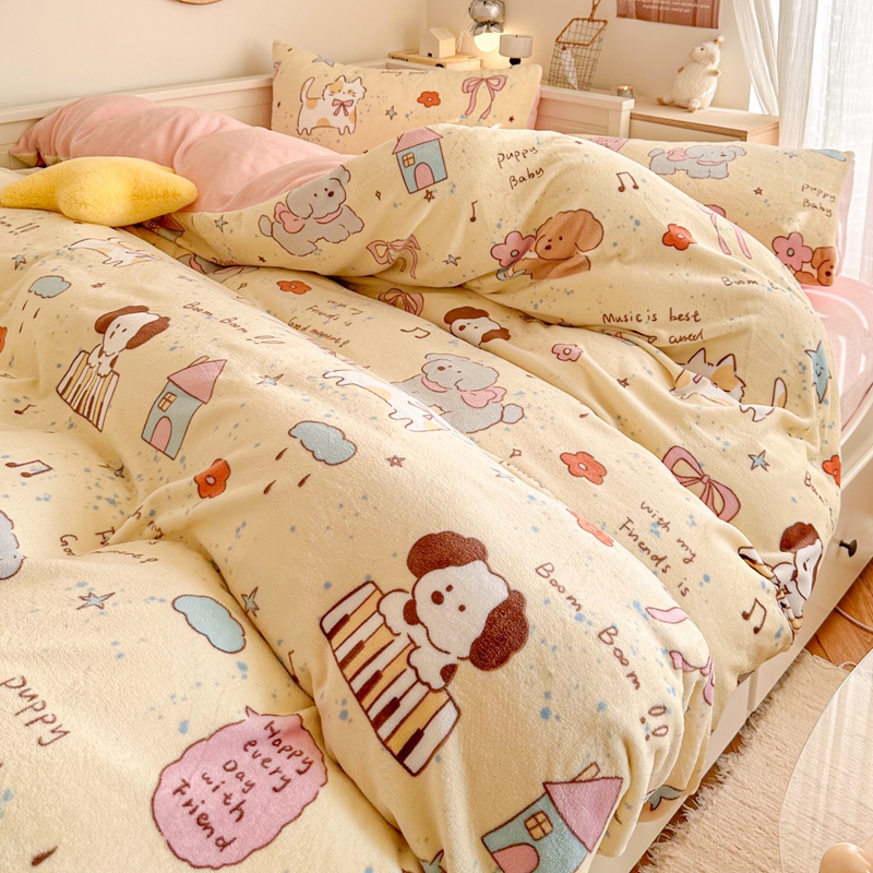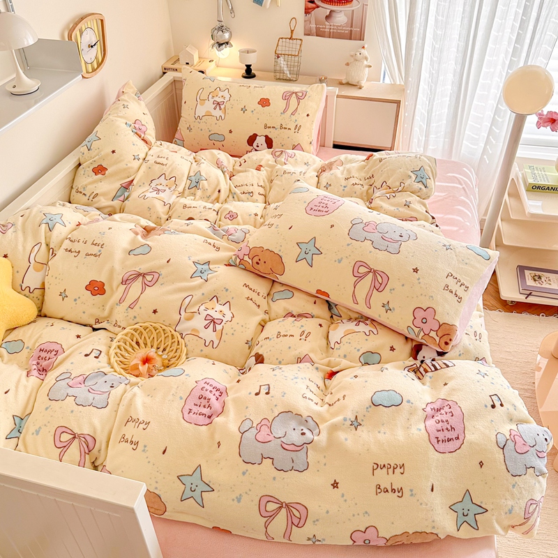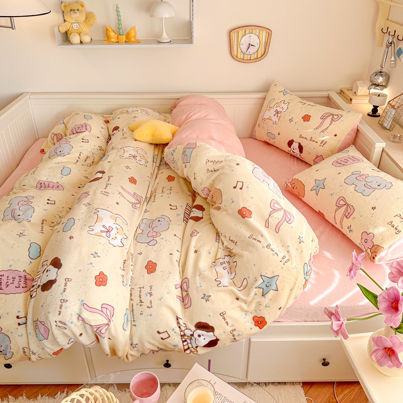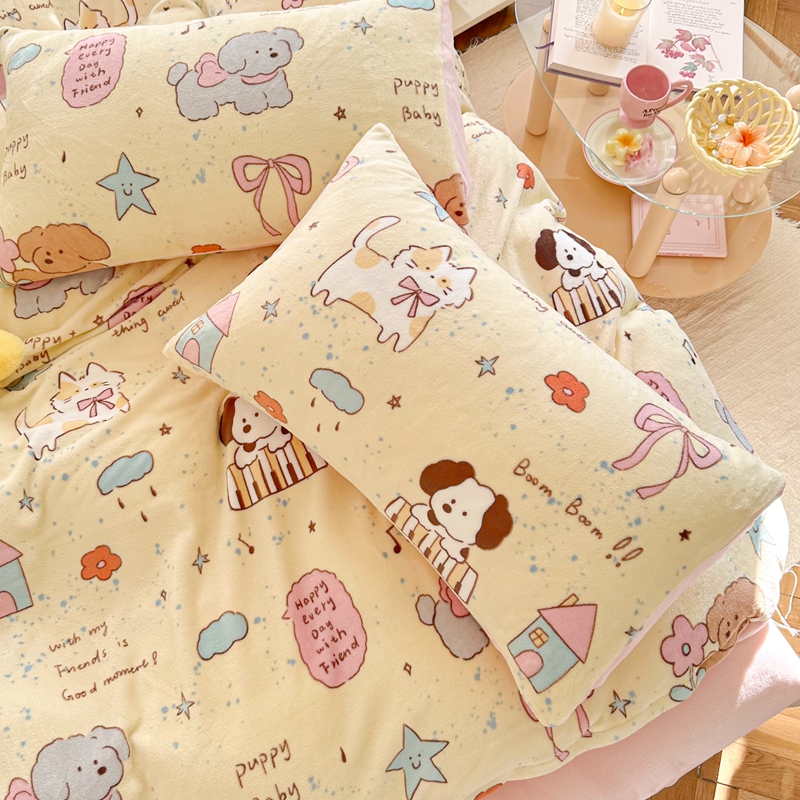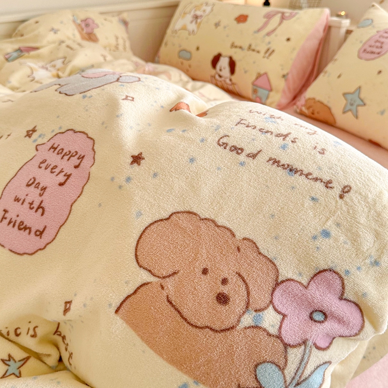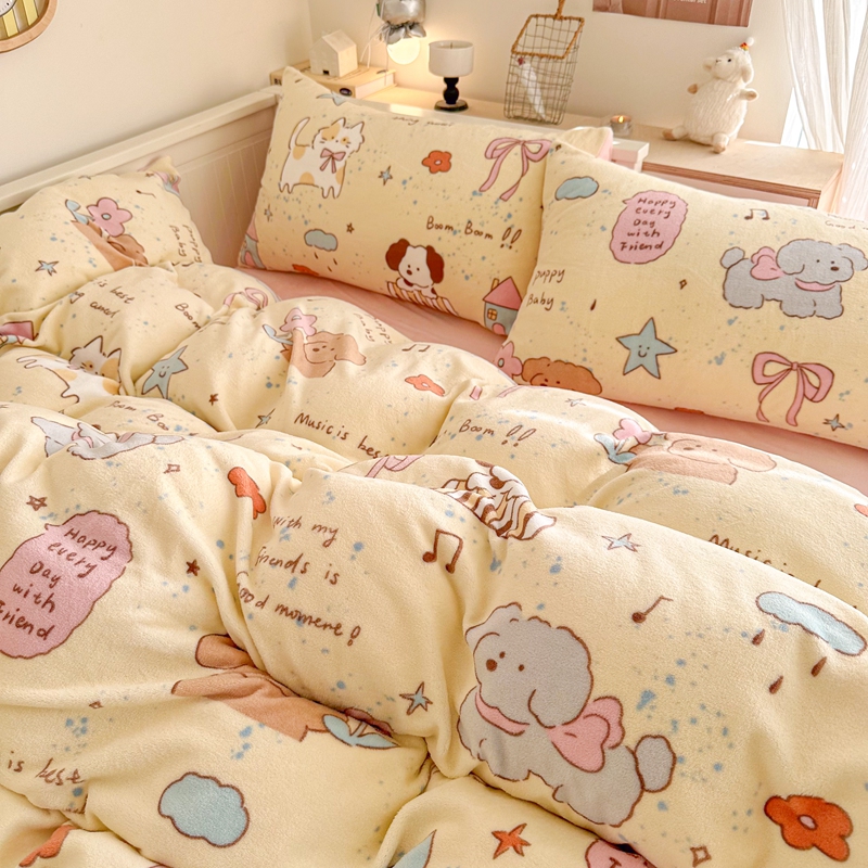 (总)呗旺鹿 2025新款A类高克重卡通印花牛奶绒印花四件套,蝴蝶结圆点小狗,开飞机的小熊,猫狗派对,奶油小猫,奶油星星狗,小熊的礼物,信封小熊,音乐小狗