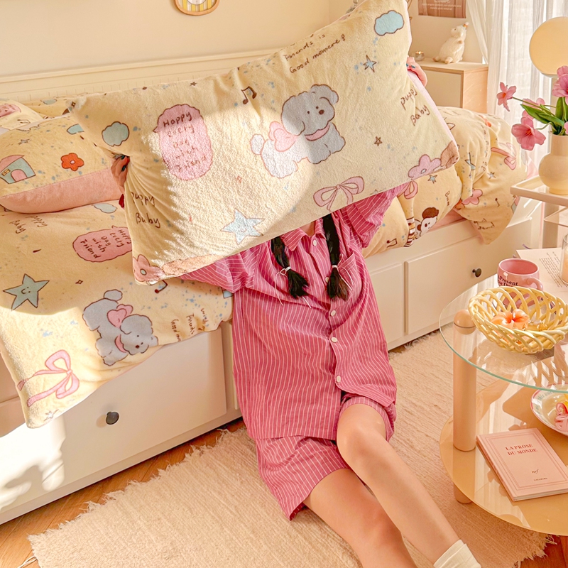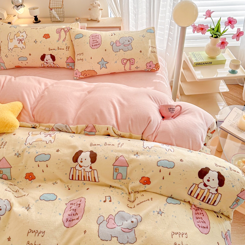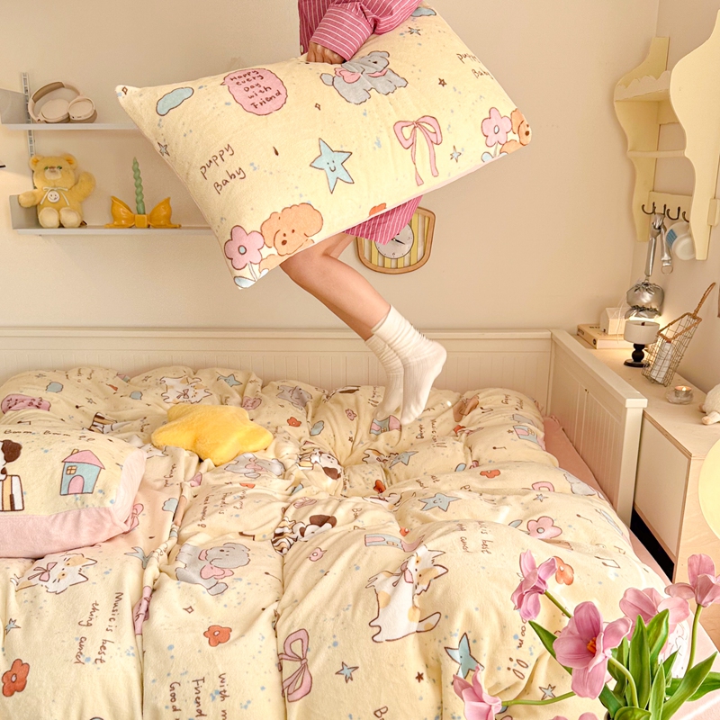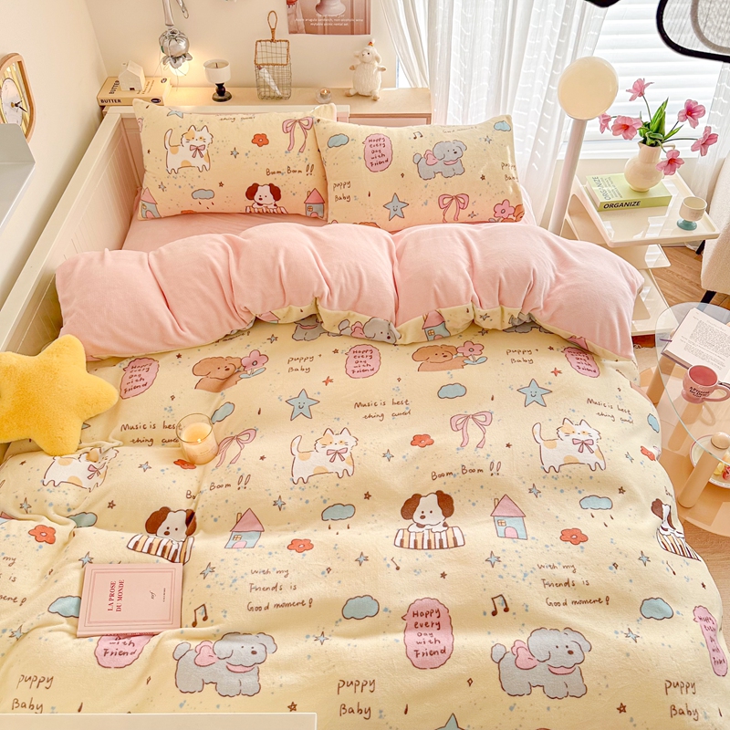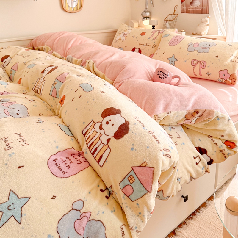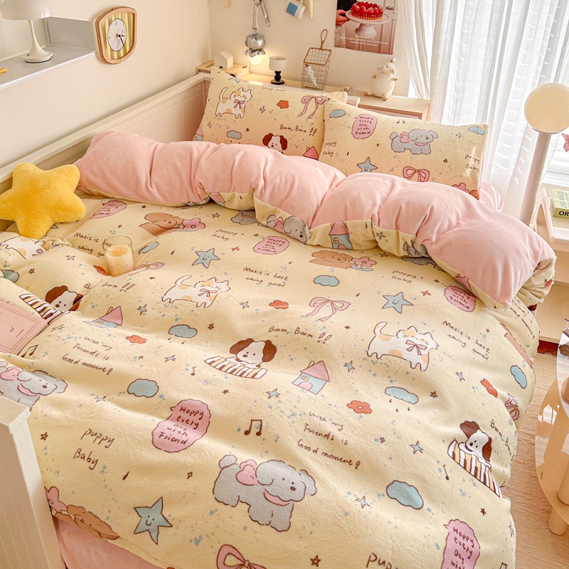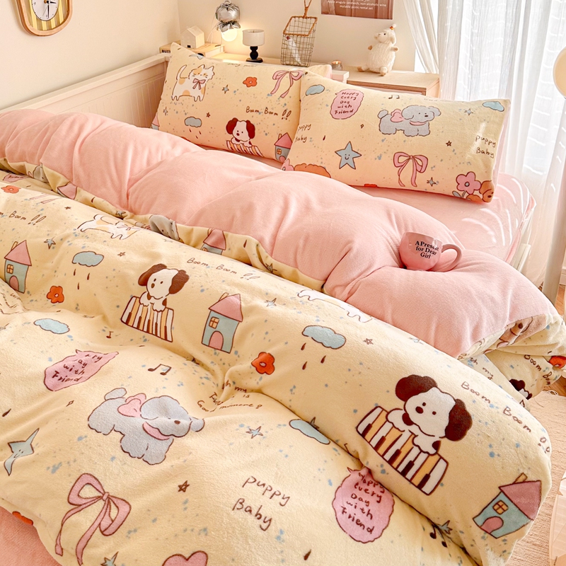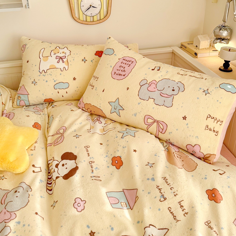 (总)呗旺鹿 2025新款A类高克重卡通印花牛奶绒印花四件套,蝴蝶结圆点小狗,开飞机的小熊,猫狗派对,奶油小猫,奶油星星狗,小熊的礼物,信封小熊,音乐小狗