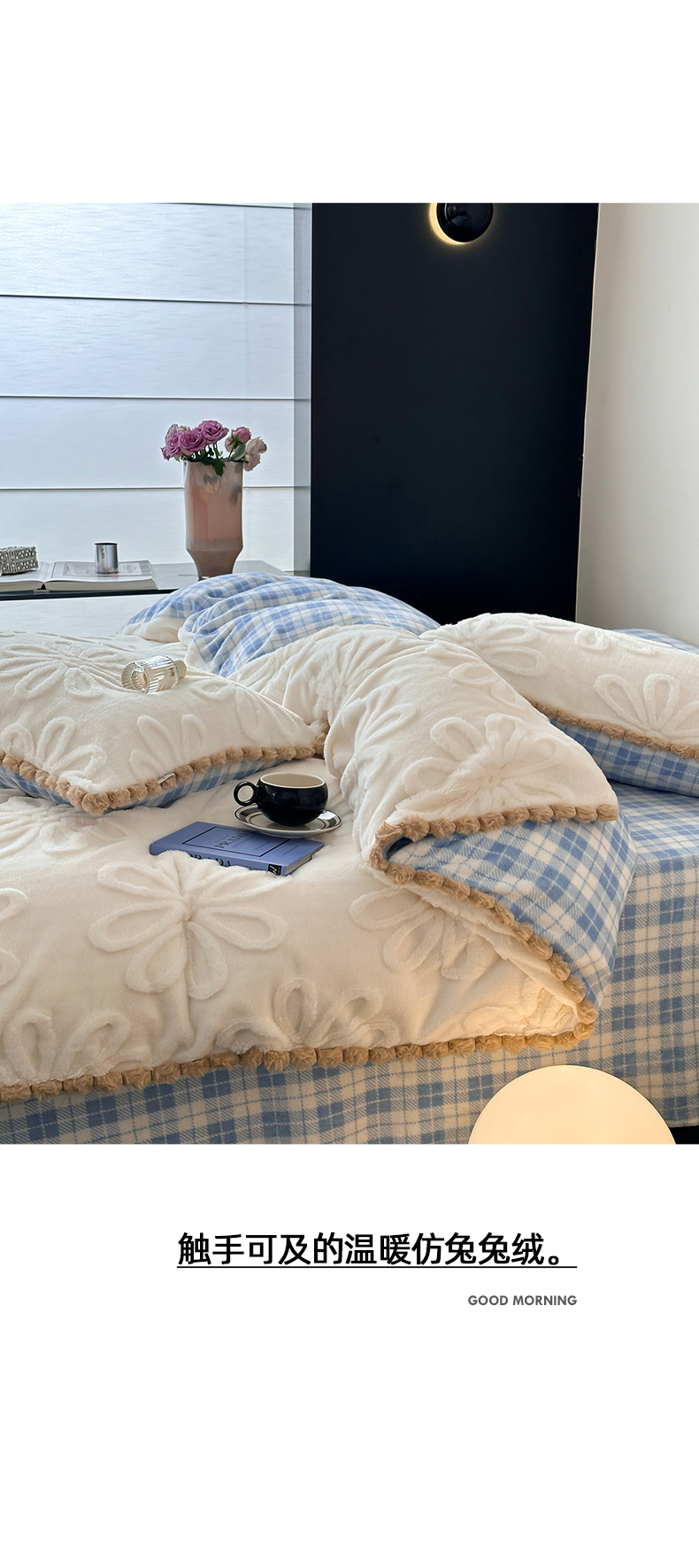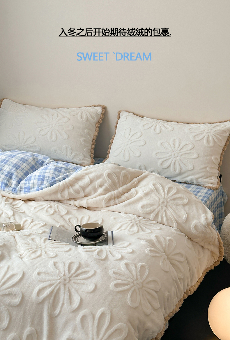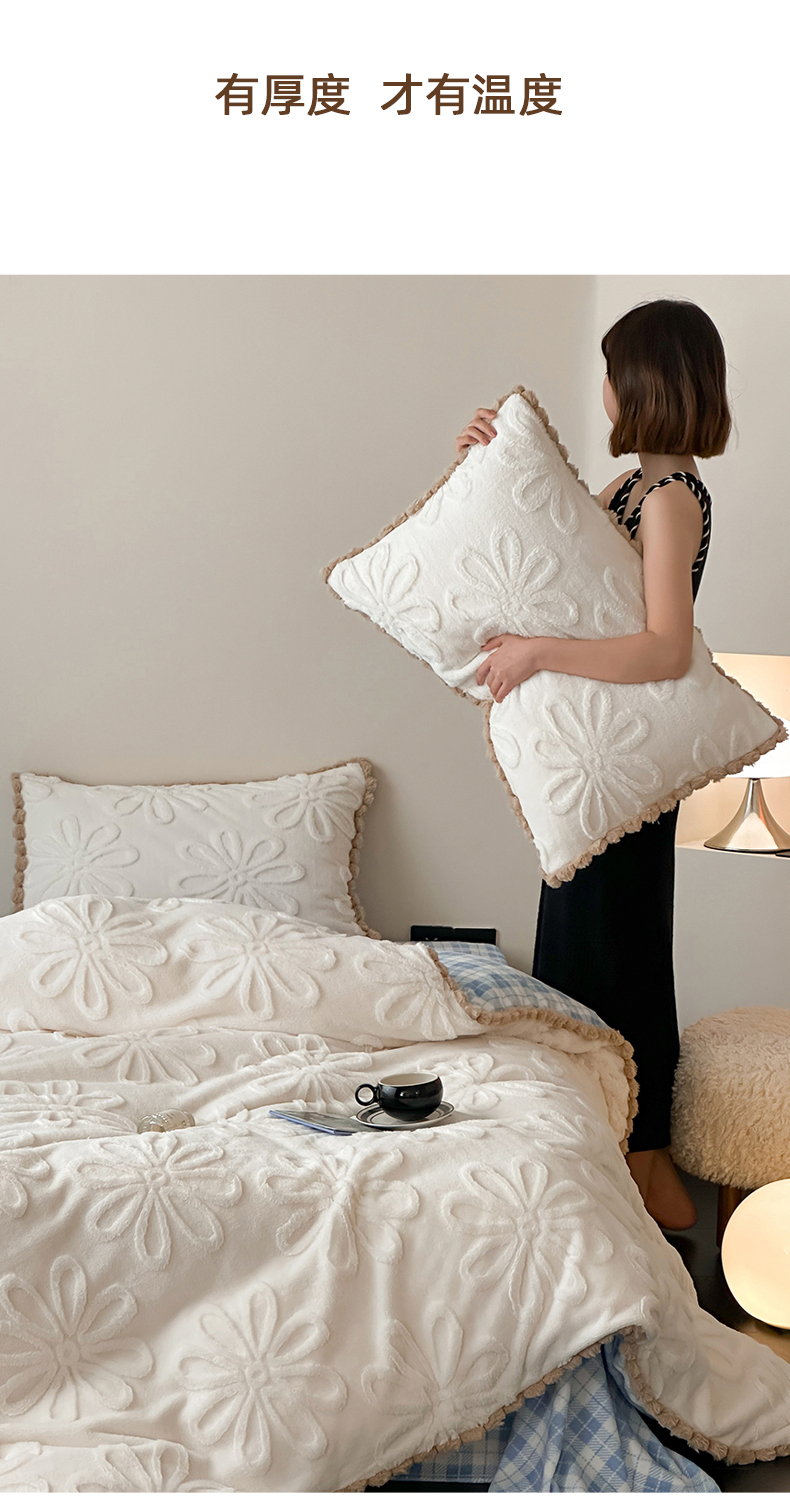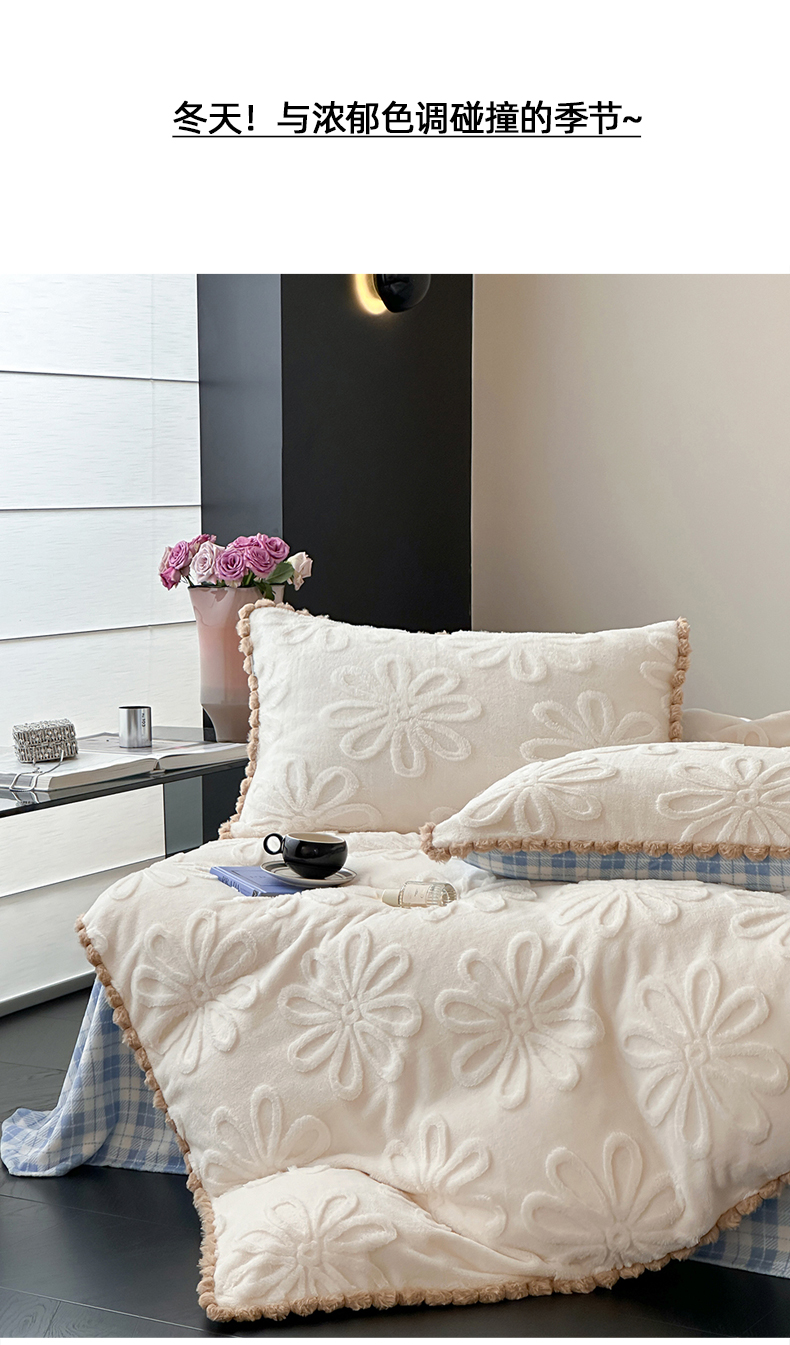 桔子家纺 2024新款兔兔绒立体雕花蝴蝶结系列四件套 米白雏菊
