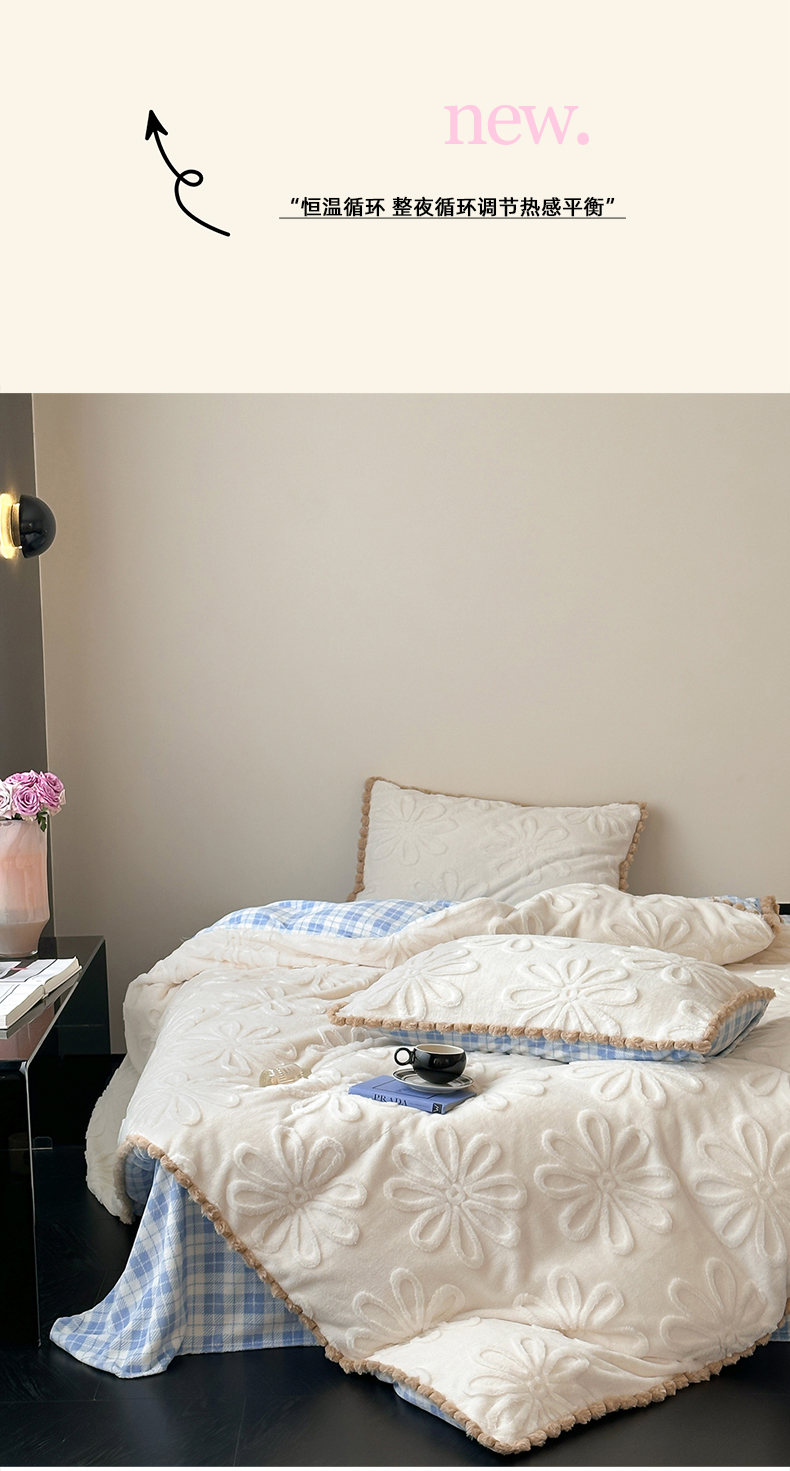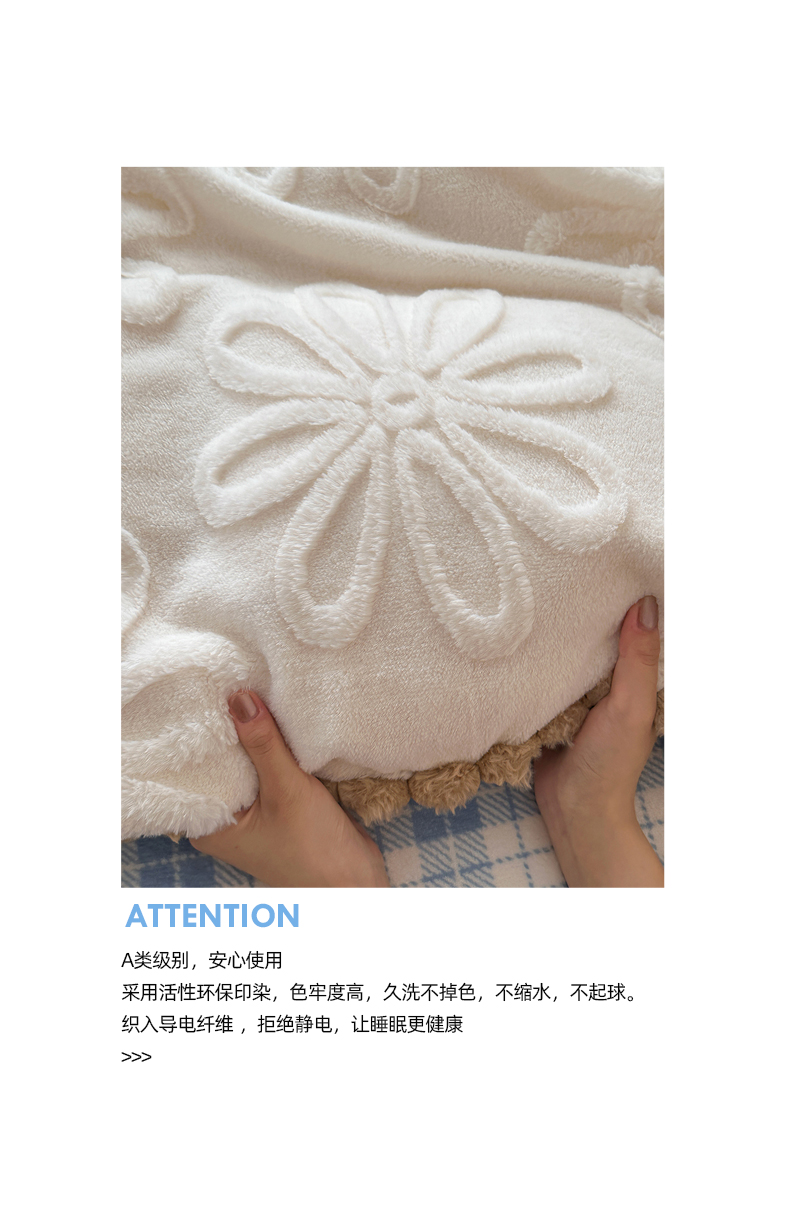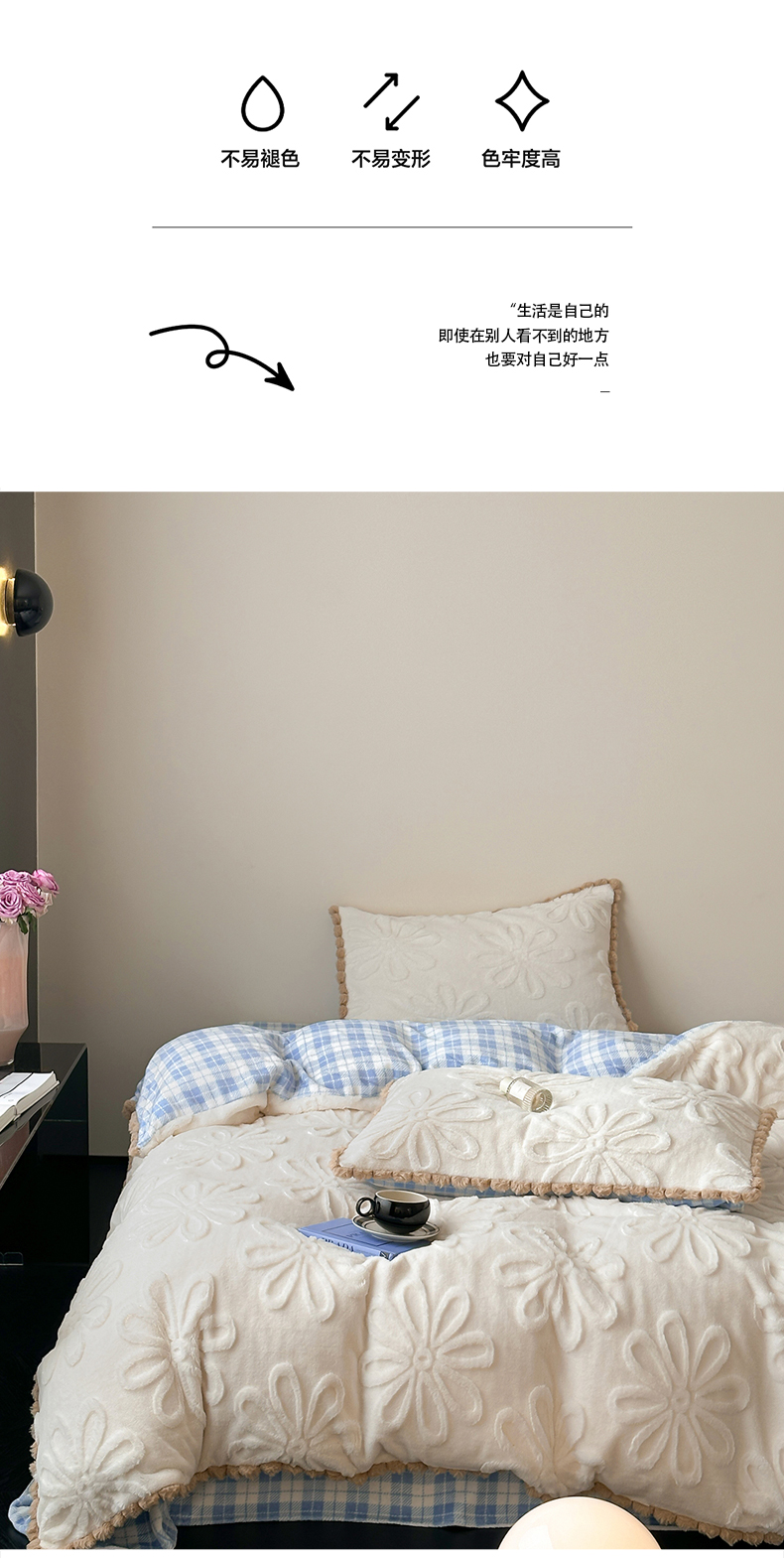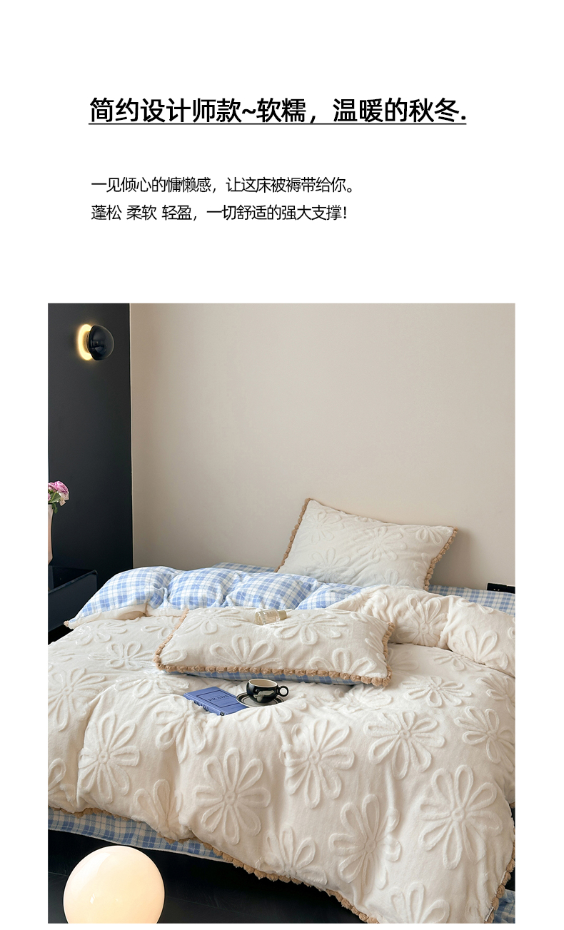 桔子家纺 2024新款兔兔绒立体雕花蝴蝶结系列四件套 米白雏菊