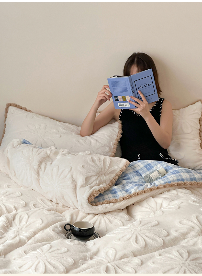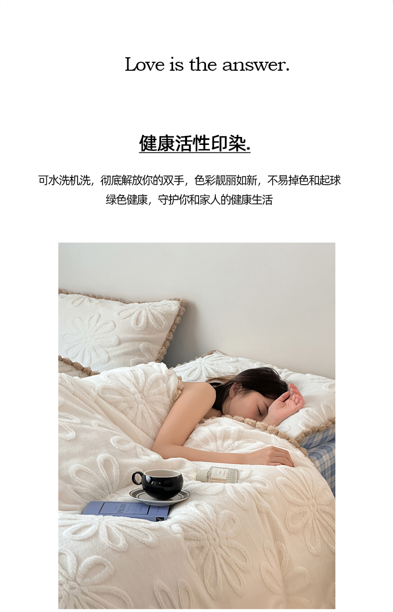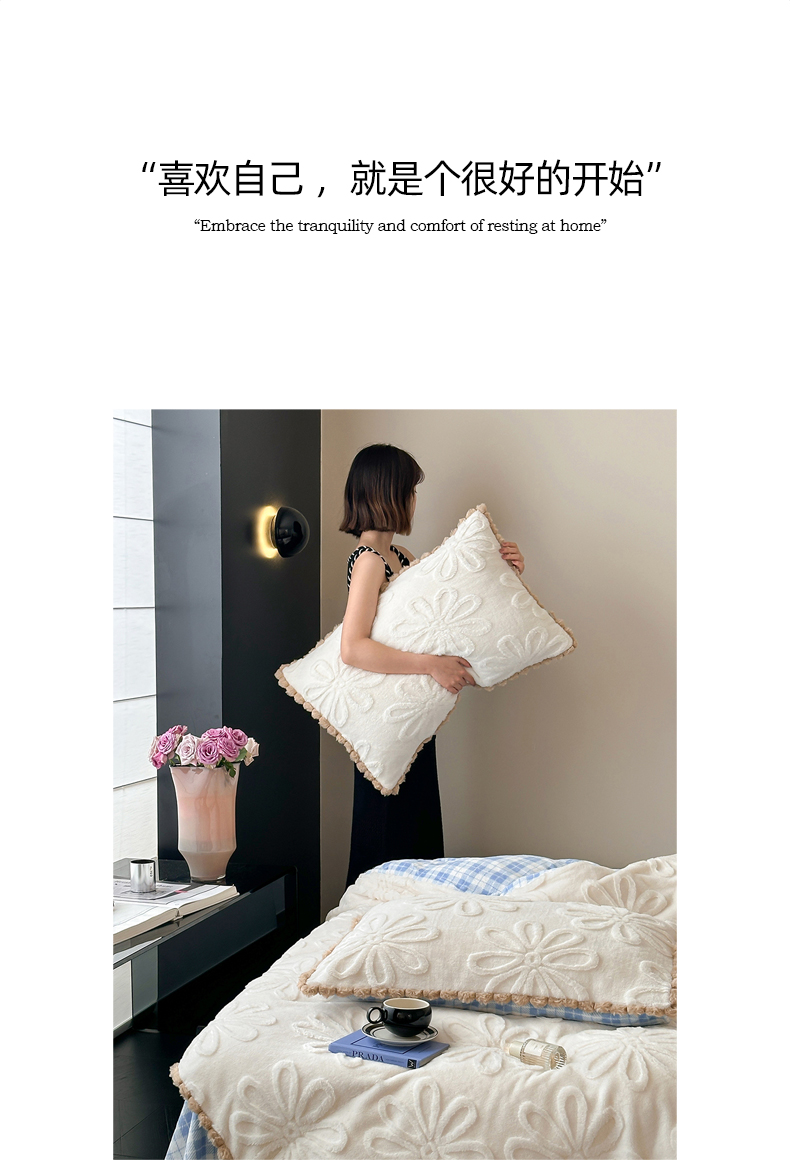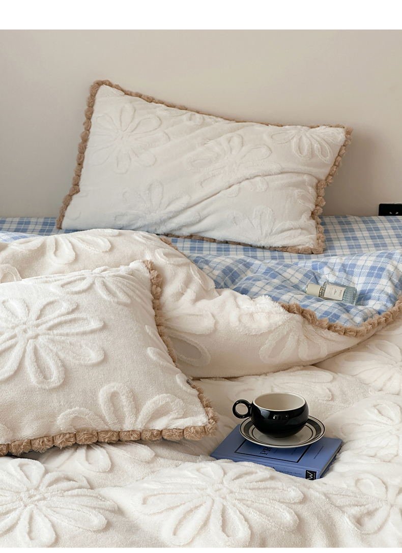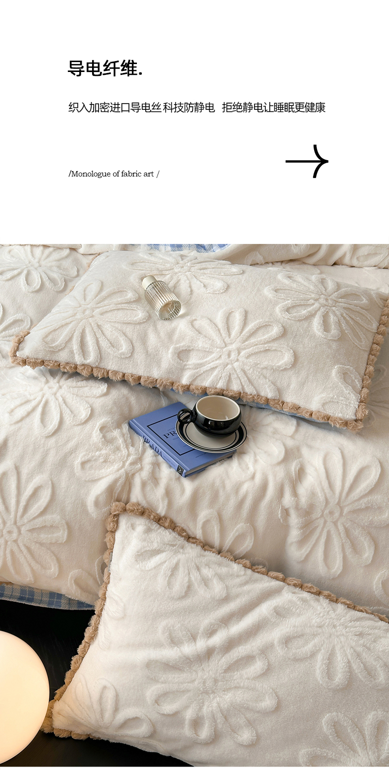 桔子家纺 2024新款兔兔绒立体雕花蝴蝶结系列四件套 米白雏菊