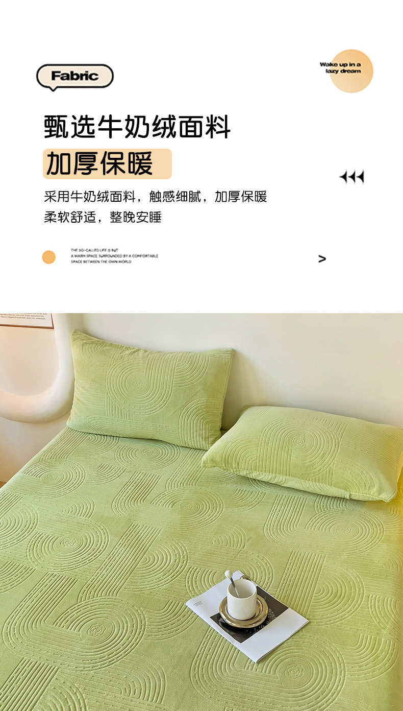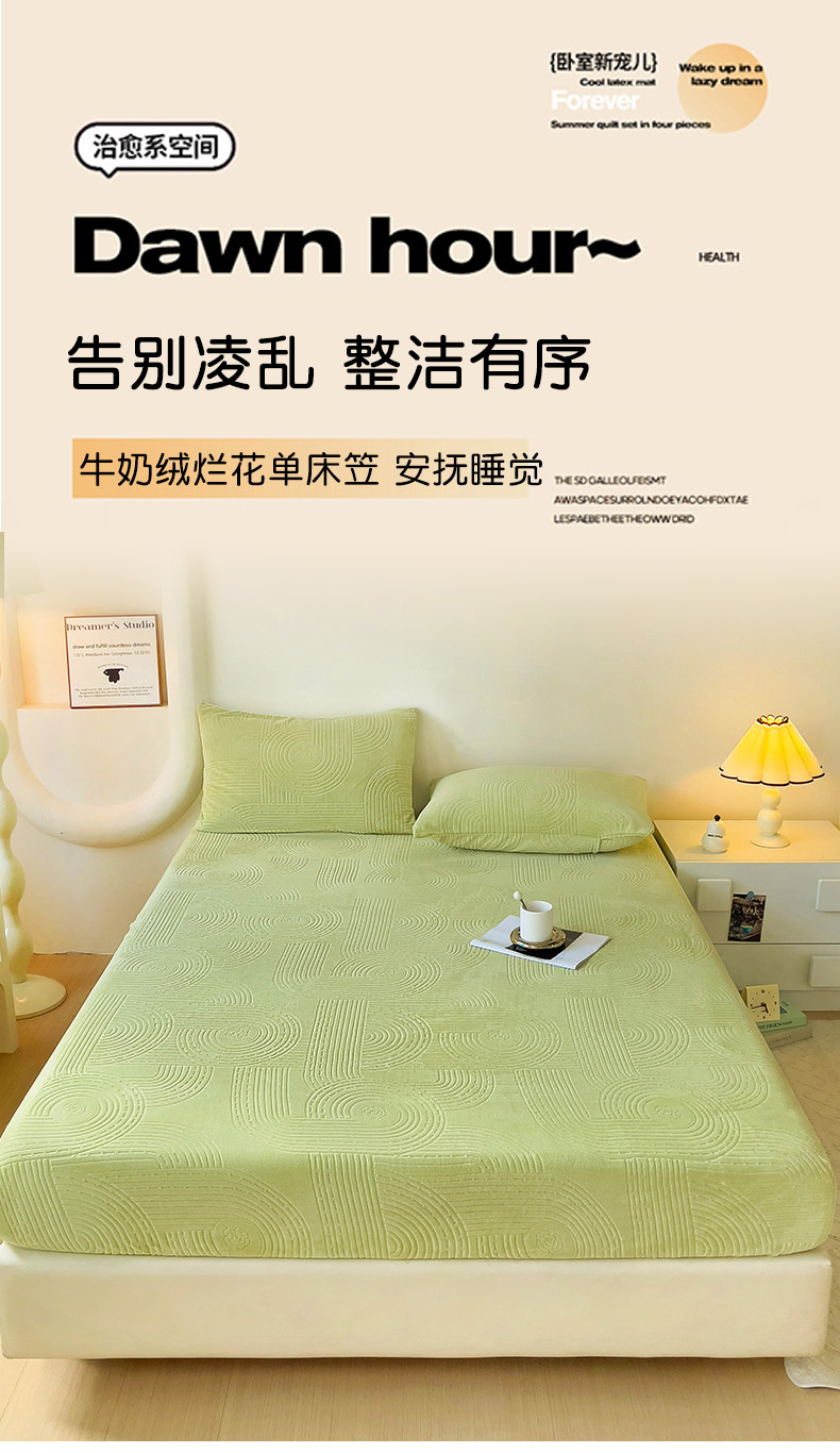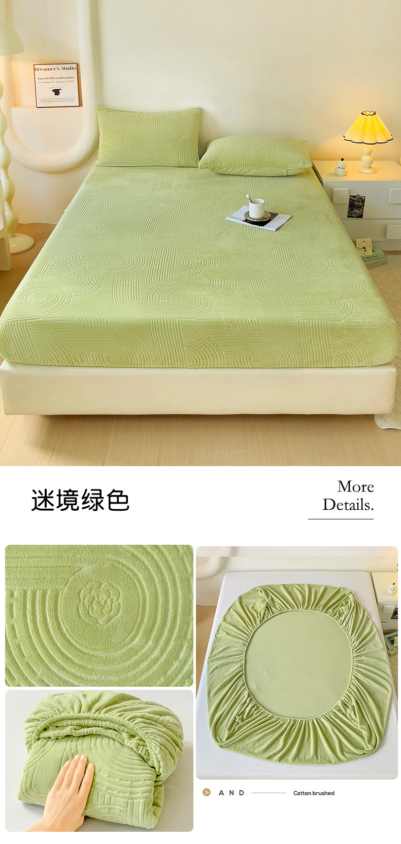 漫时光 2025新款牛奶绒烂花床笠 迷境绿色