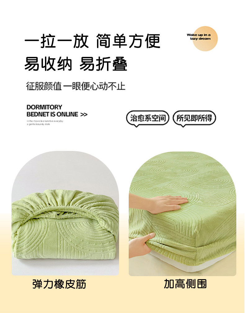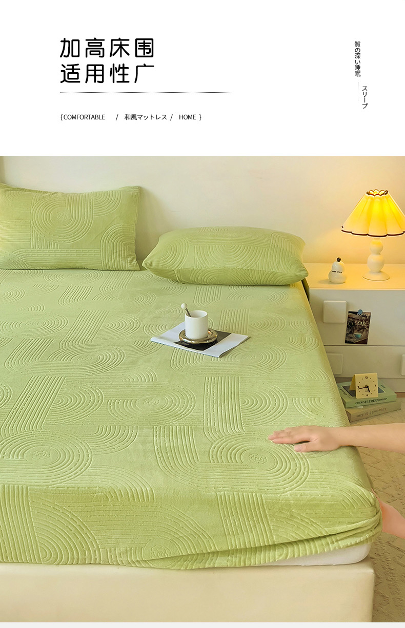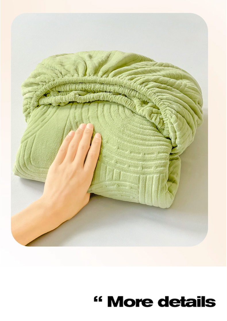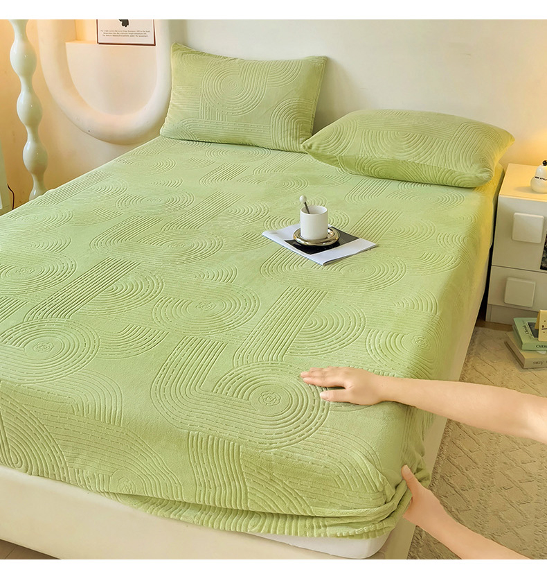 漫时光 2025新款牛奶绒烂花床笠 迷境绿色