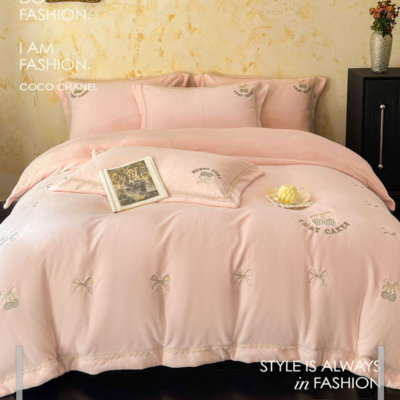 • 91家纺网 家纺一手货源 找家纺 未来家居 2024新款全活性高克重牛奶绒四件套 甜心-粉