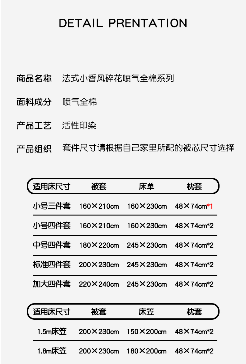 小号四件套【被套160*210,床单160*230,枕套48*74一对】 | ¥80.00 |