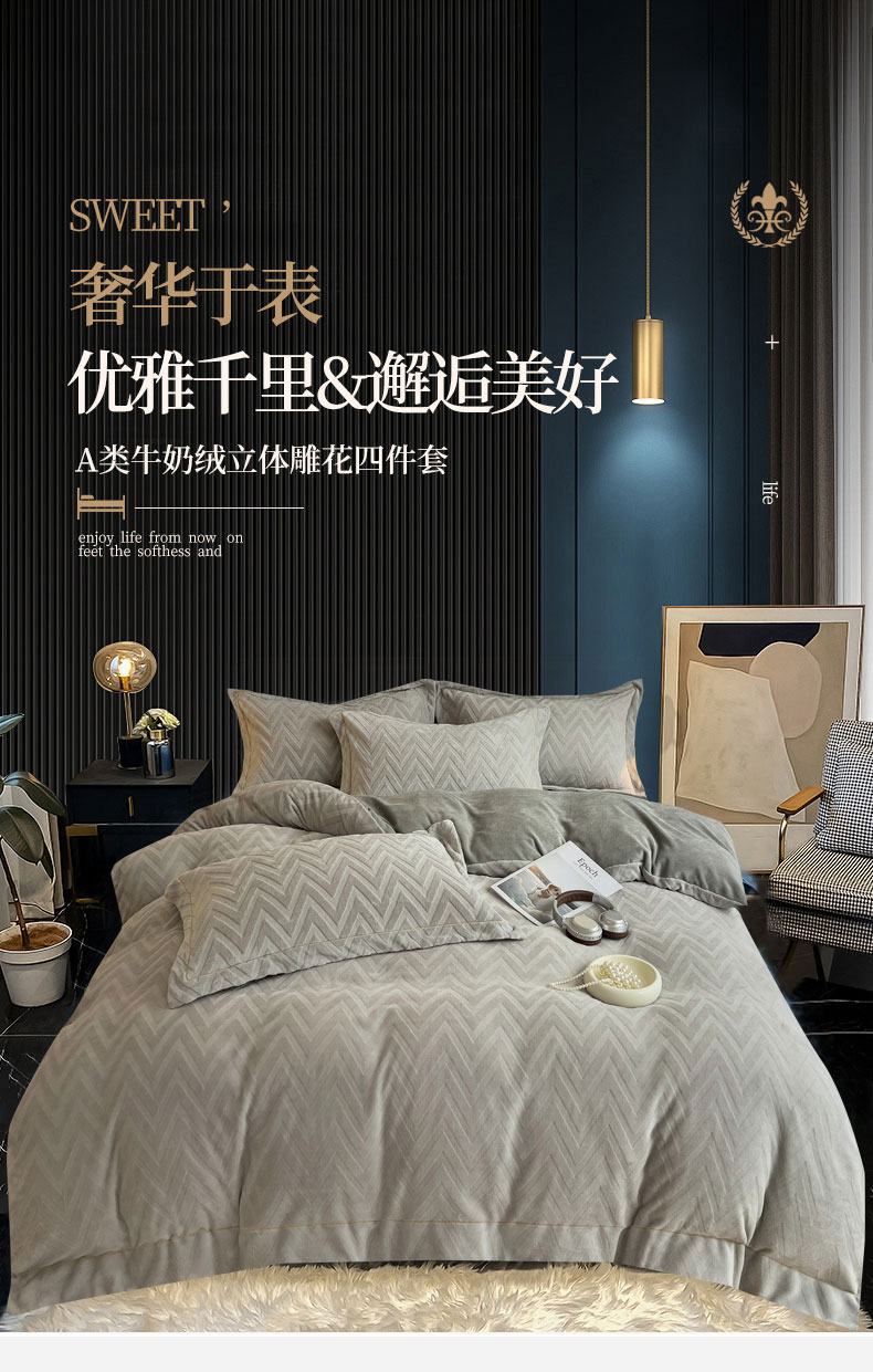 当前位置: 91家纺网 > 商品网购 > 床品套件 > 四件套 > 牛奶绒四件套 > 灰鲸 2025新款高克重牛奶绒立体雕花四件套-瑞纳 瑞纳-纳多灰+山灰
