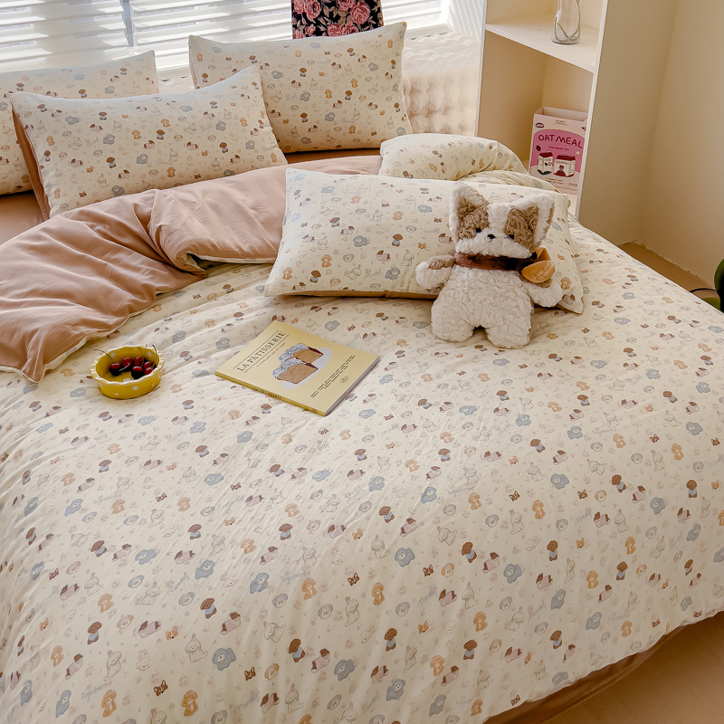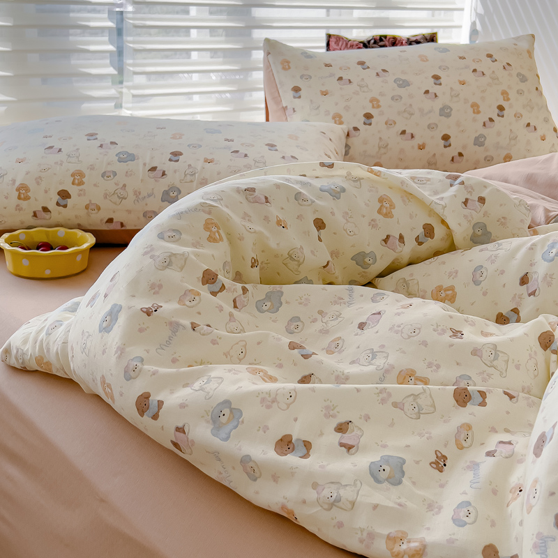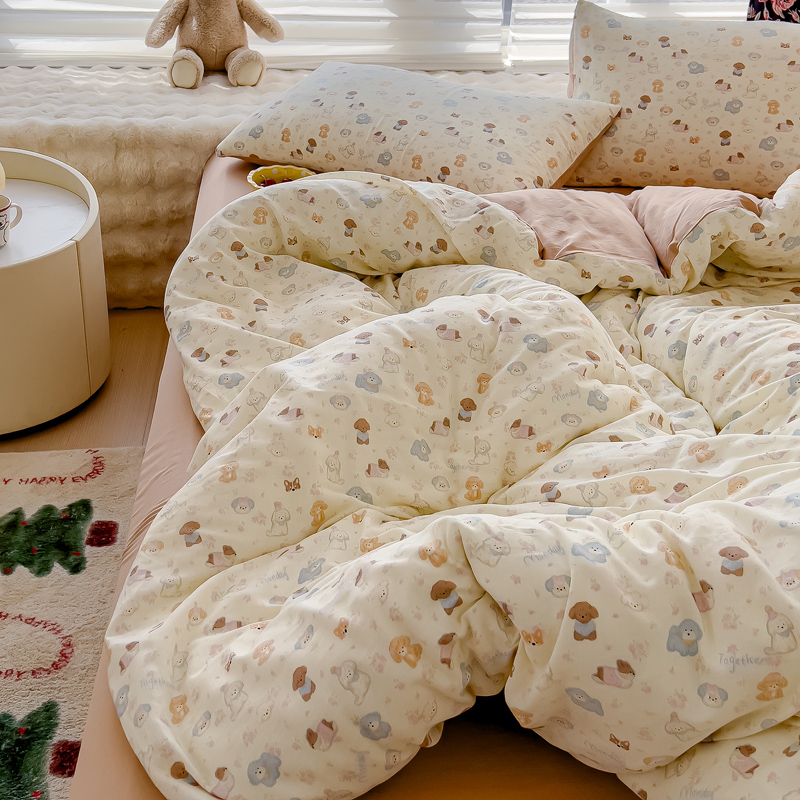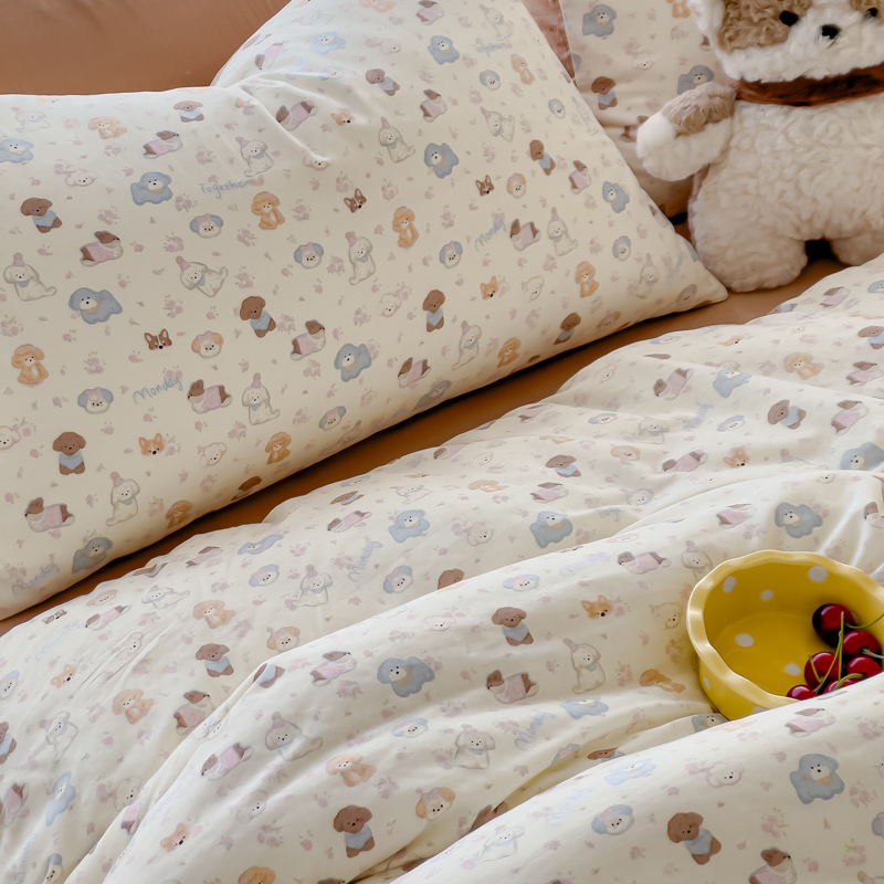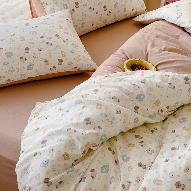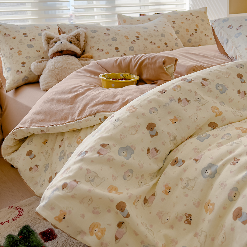 商品名称:金丝鸟家纺 2024秋冬新品全棉双层纱四件套 泡芙狗