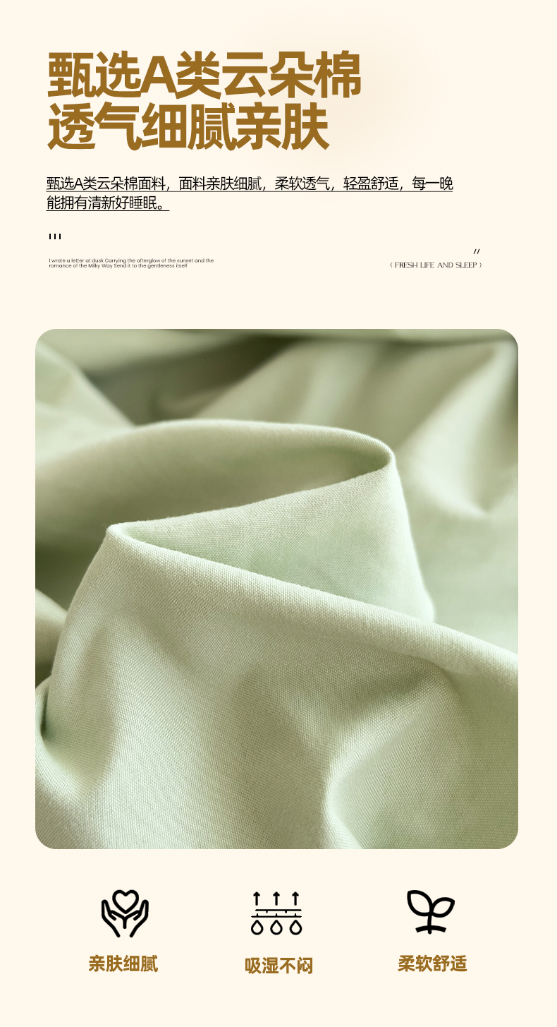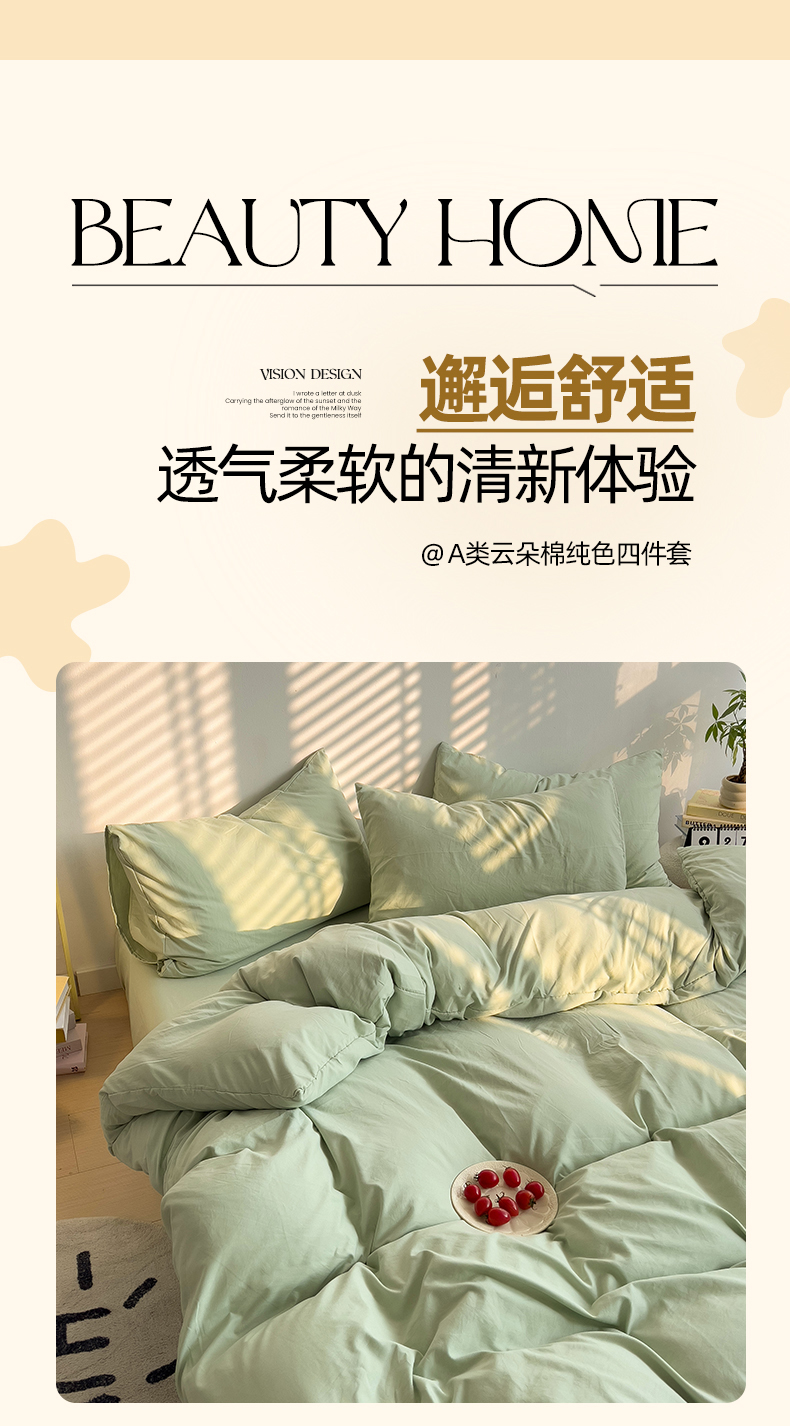 当前位置: 91家纺网 > 商品网购 > 床品套件 > 四件套 > 水洗棉四件套 > 妖妖家纺 2025新款水洗云朵棉纯色四件套 果绿