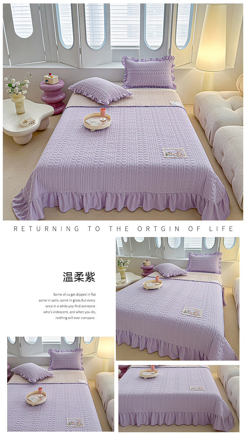 商品名称:源舜家纺 2025新款云感皱皱纱韩版纯色床盖三件套 温柔紫
