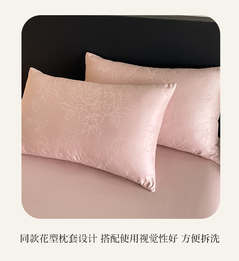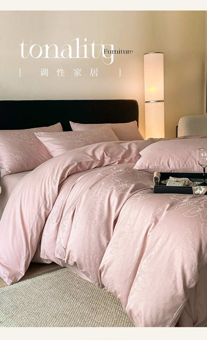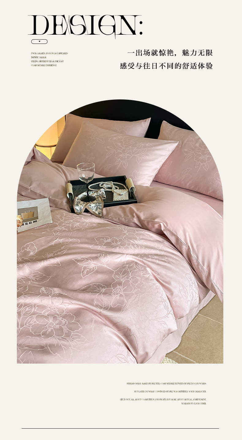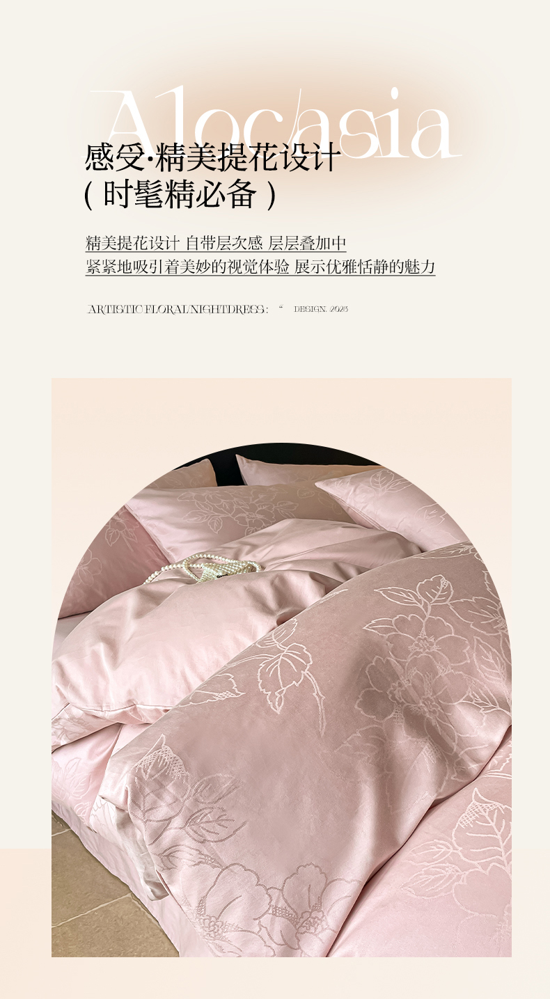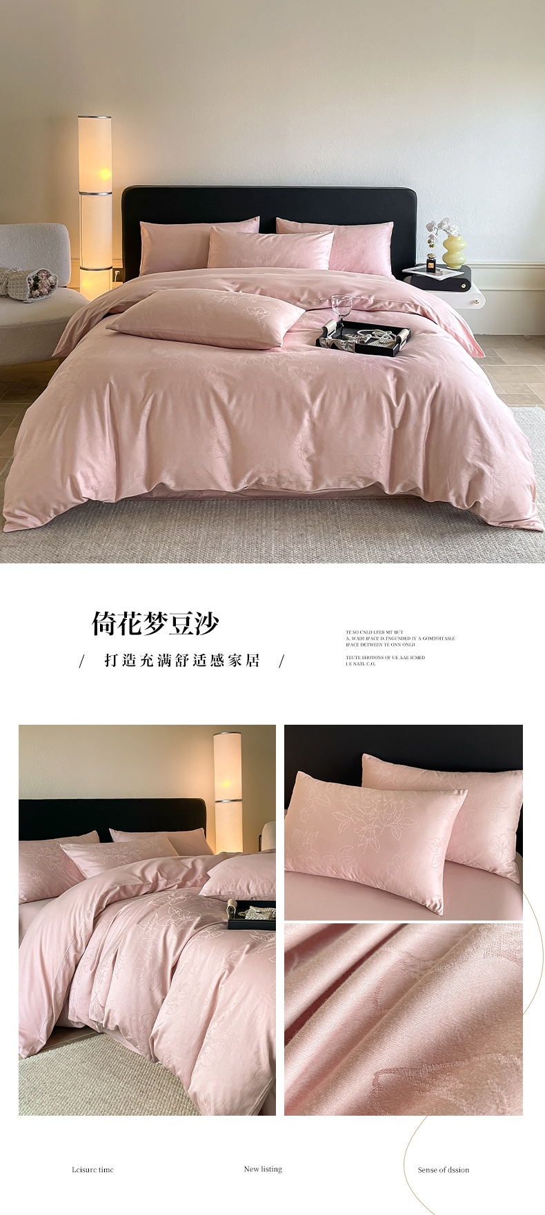 三朵家纺 2024新款全棉贡缎大提花四件套系列 倚花梦豆沙
