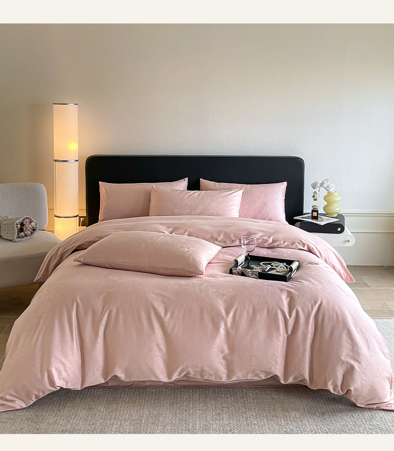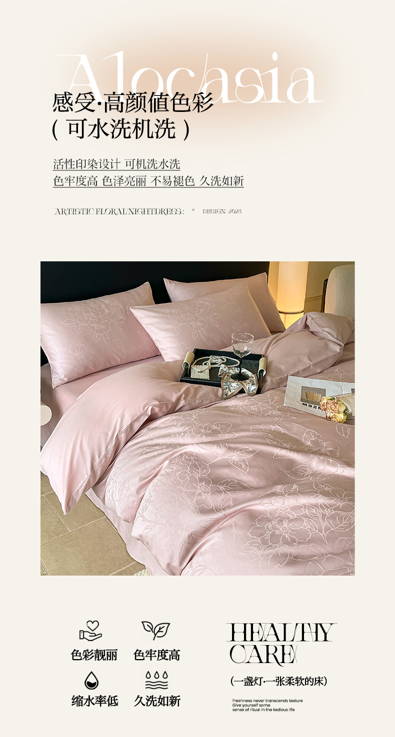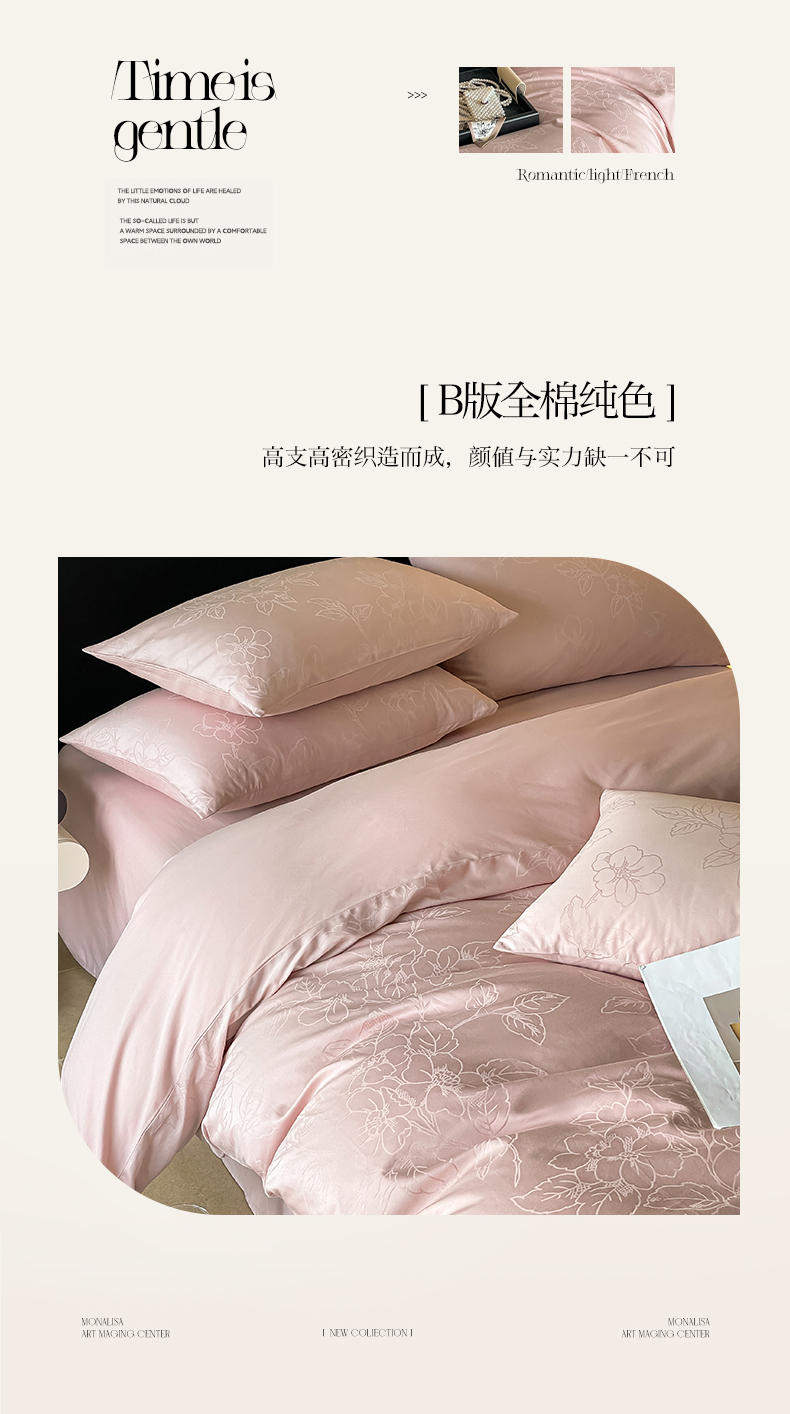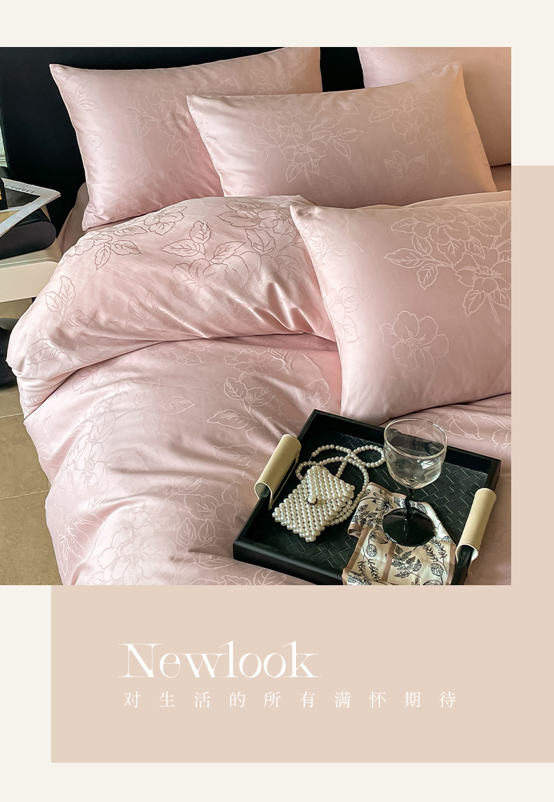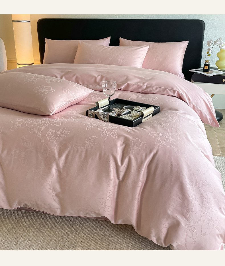 三朵家纺 2024新款全棉贡缎大提花四件套系列 倚花梦豆沙