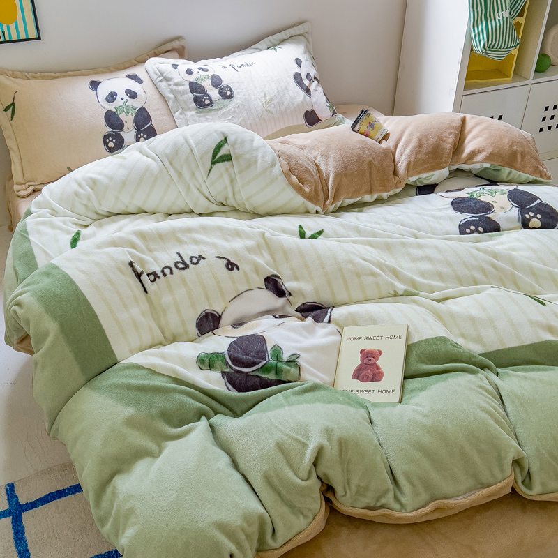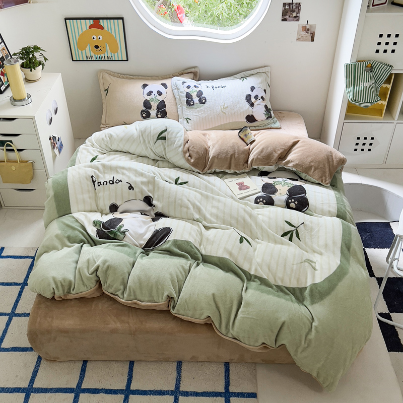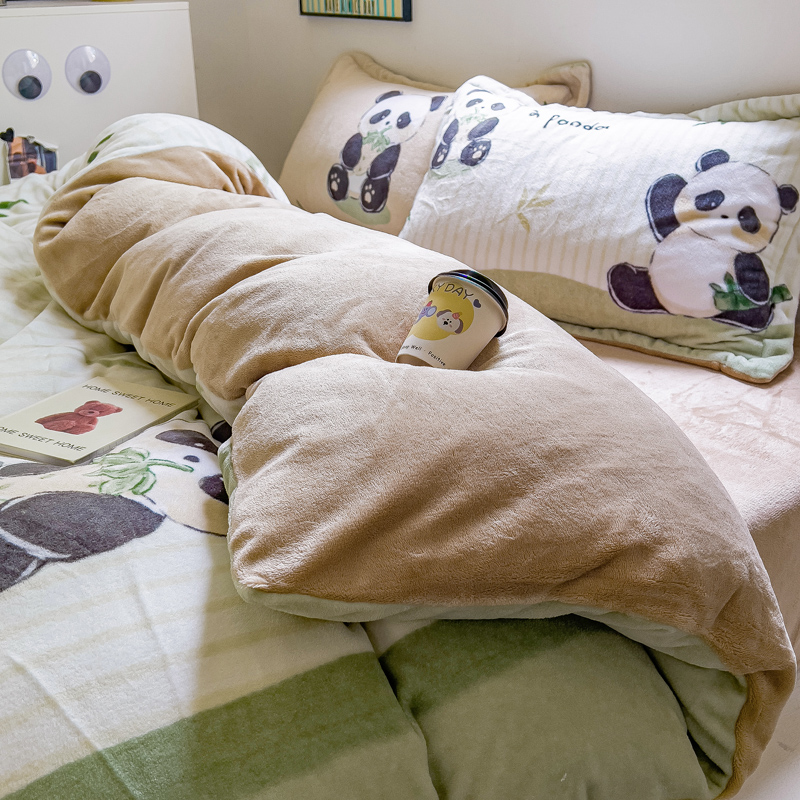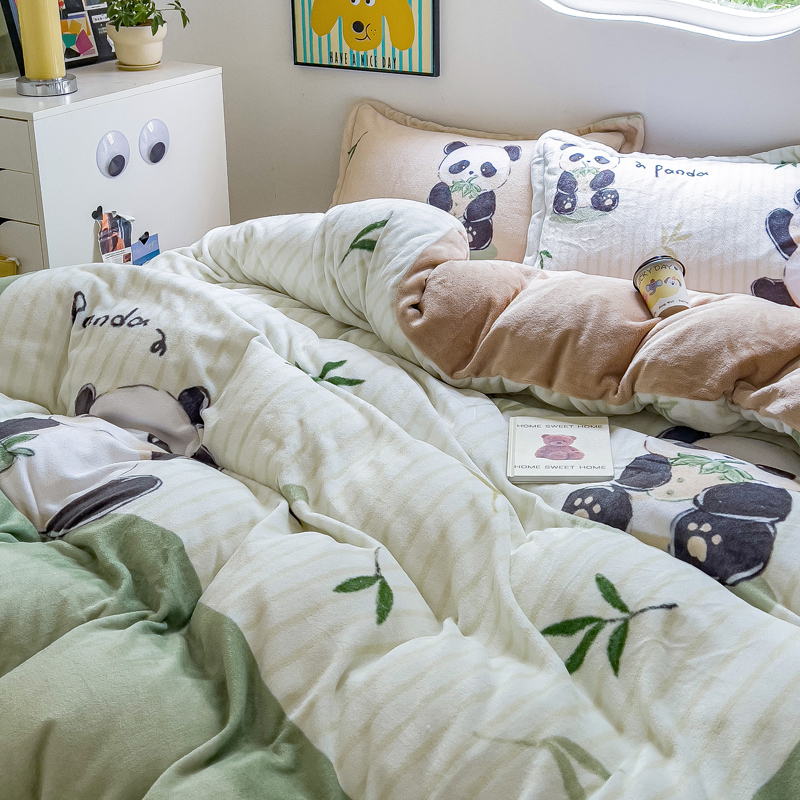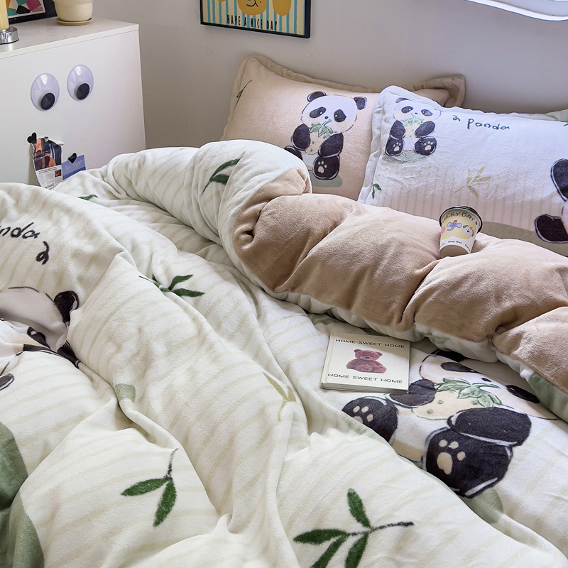 当前位置: 91家纺网 > 商品网购 > 床品套件 > 四件套 > 牛奶绒四件套 > (买家秀 爆款不断货)A类母婴级双面牛奶绒珊瑚绒雪花绒四件套AB版高克重卡通牛奶绒四件套花卉-场景2 贪吃熊猫