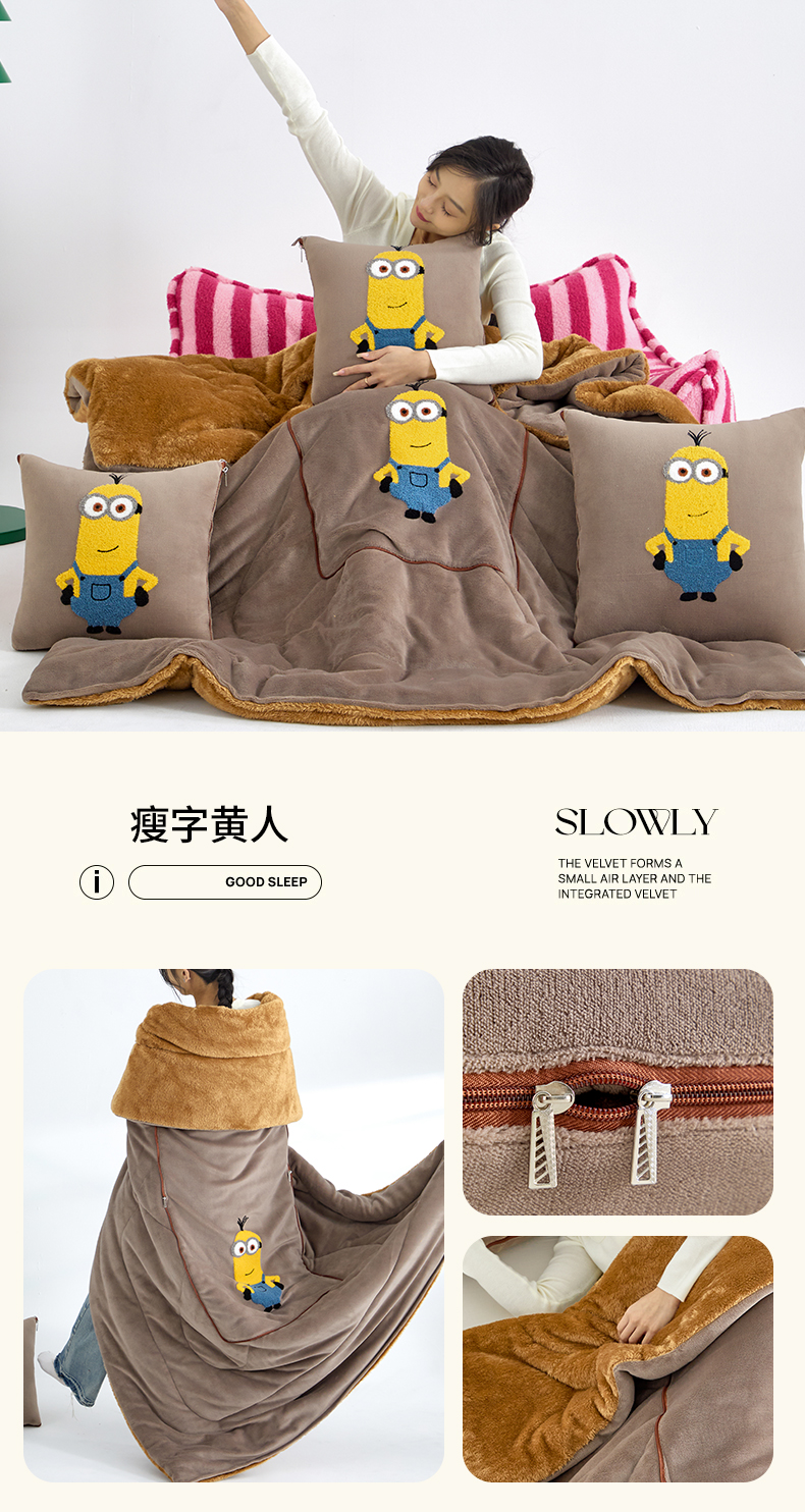 宝马家纺(原梦童画) 2025新款小黄人抱枕被加厚抱枕被 瘦字黄人