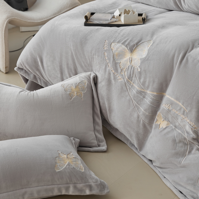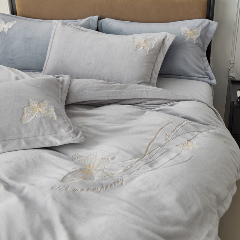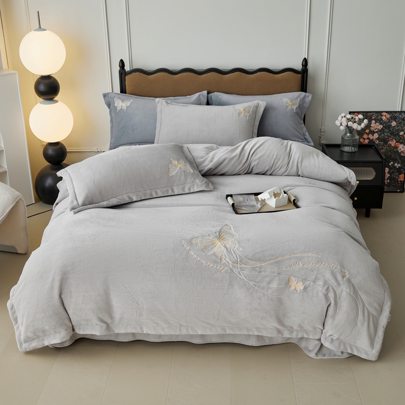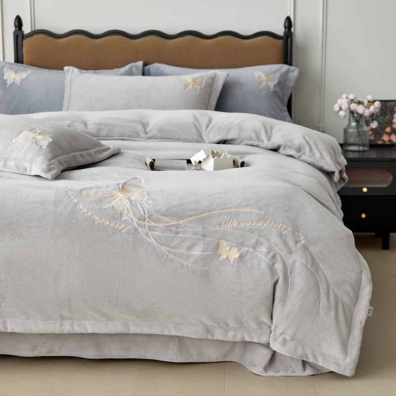商品名称:佑先生 2025新款蝴蝶绣花绒四件套 月光灰