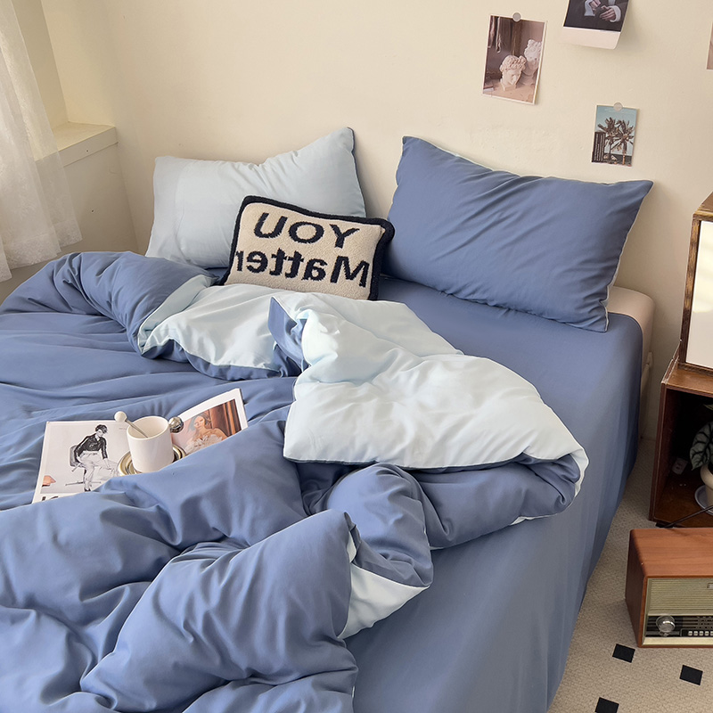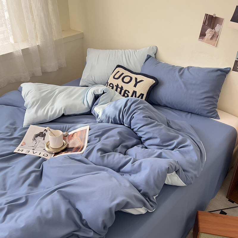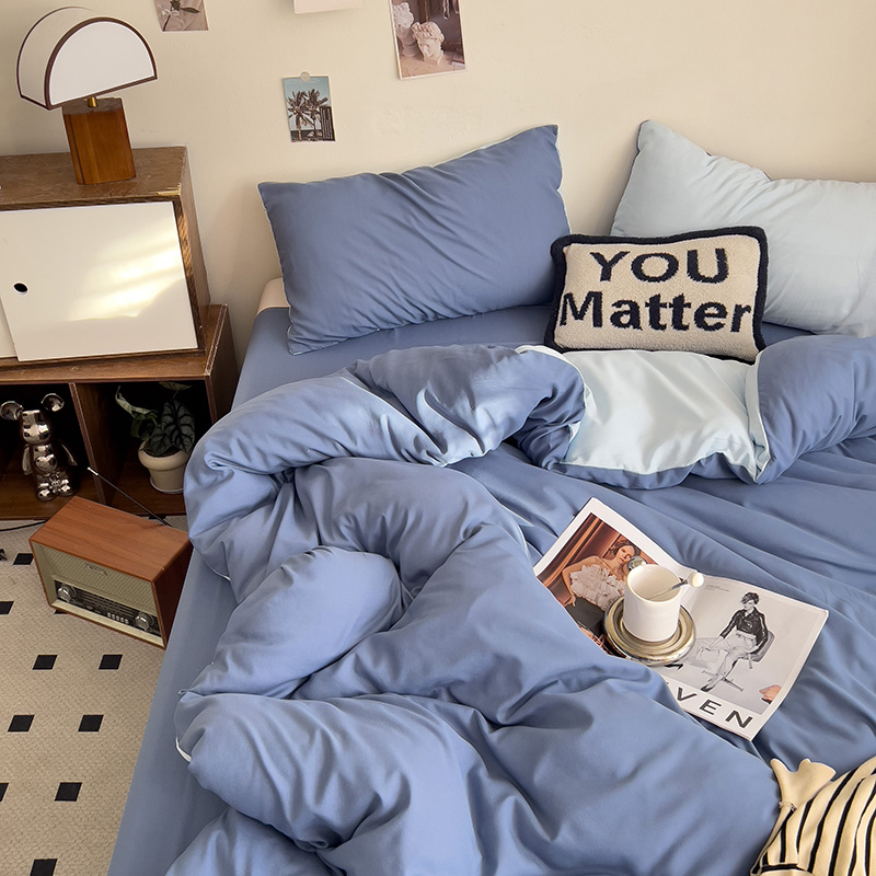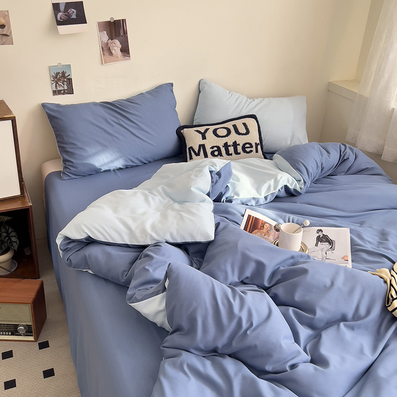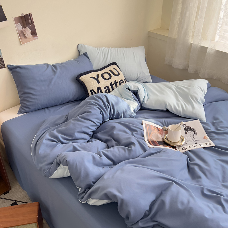 当前位置: 91家纺网 > 商品网购 > 床品套件 > 四件套 > 水洗棉四件套 > 维娜斯家纺 2025新款水洗棉纯色双拼四件套亲肤柔单人被套床单学生三件套 海蓝+牛仔蓝